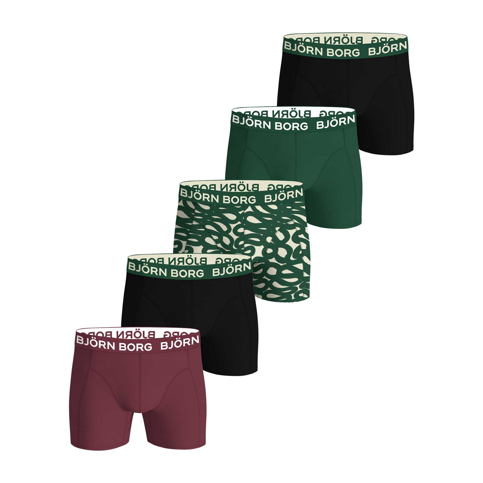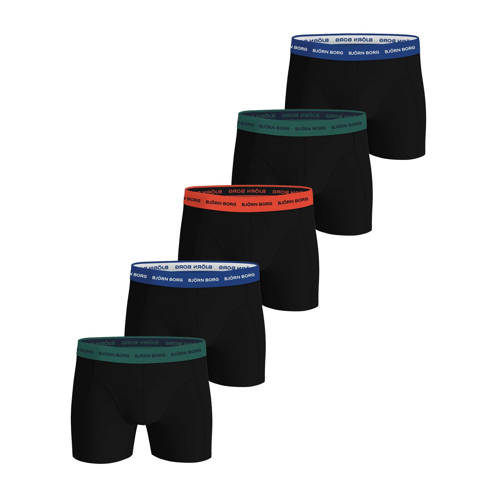 Voordeelpack van Björn Borg met 5 boxers uit de Essential Cotton serie. De Essential boxershorts zijn gemaakt van lichter katoen dan de shorts uit de Premium Organic Cotton (Core) serie, maar uitermate geschikt voor alledaags gebruik waarbij je niet al te veel van je boxer eist. De boxers zijn uitgevoerd in diverse kleurcombinaties en beschikken over een elastische heupband met daarop het Björn Borg Logo. Met deze 5-pack kun je weer even vooruit.