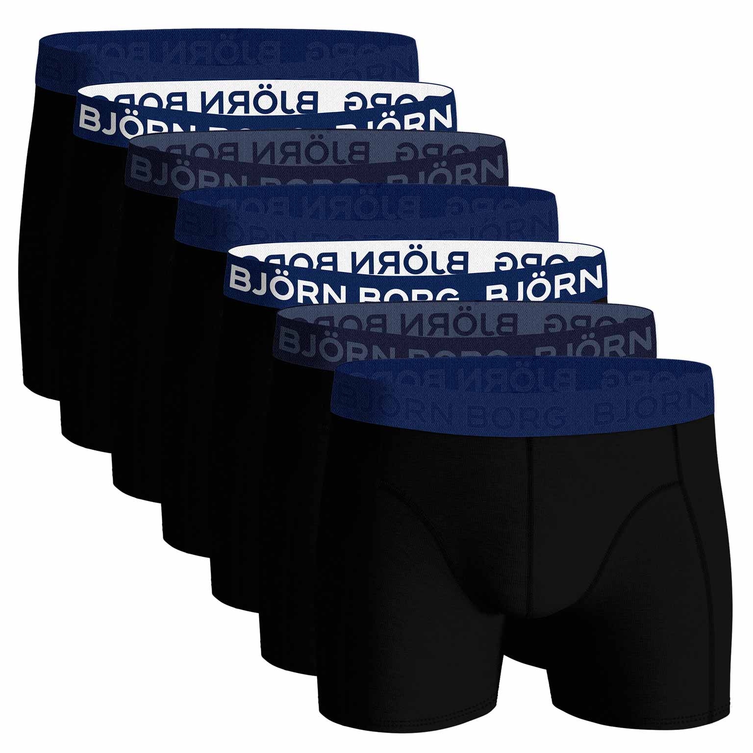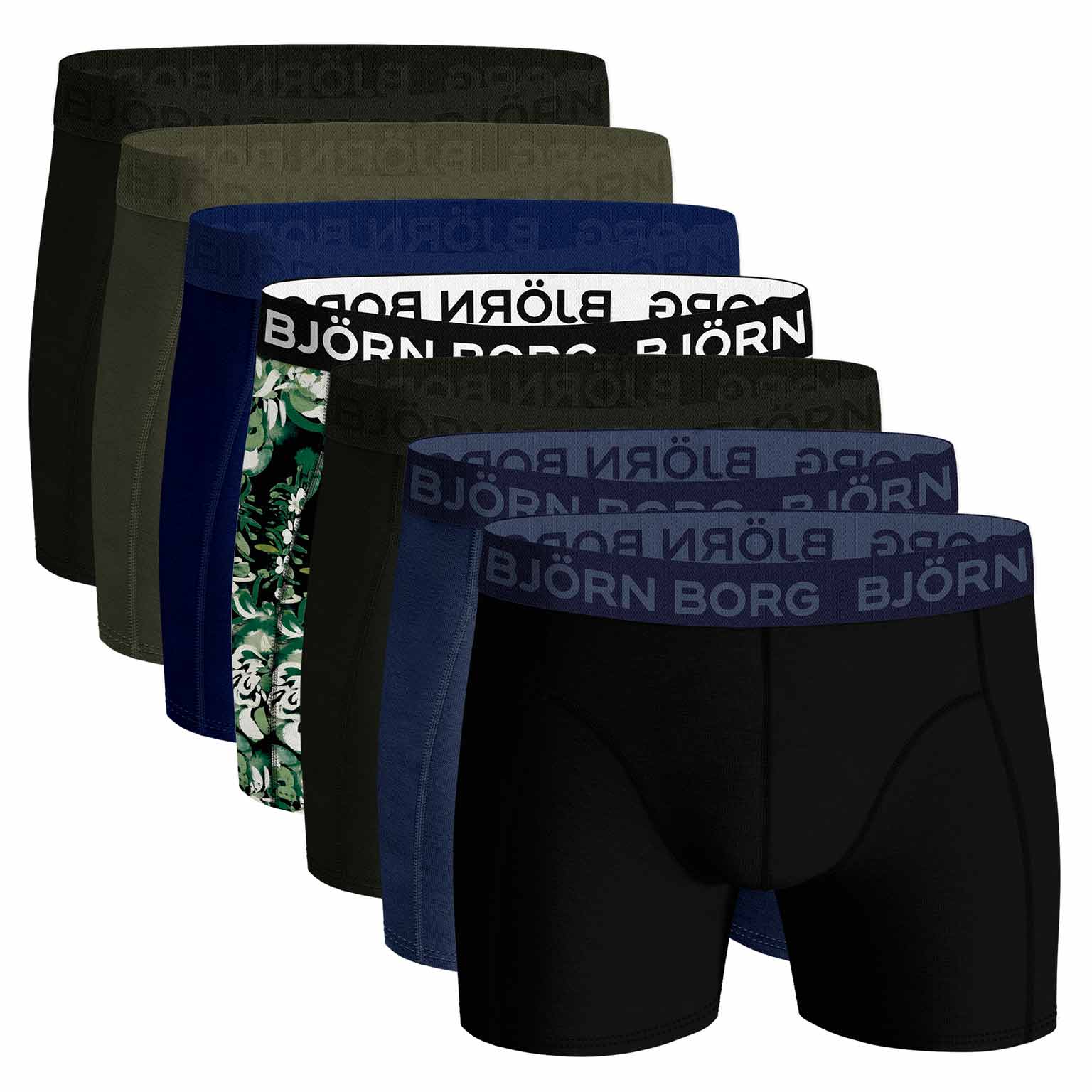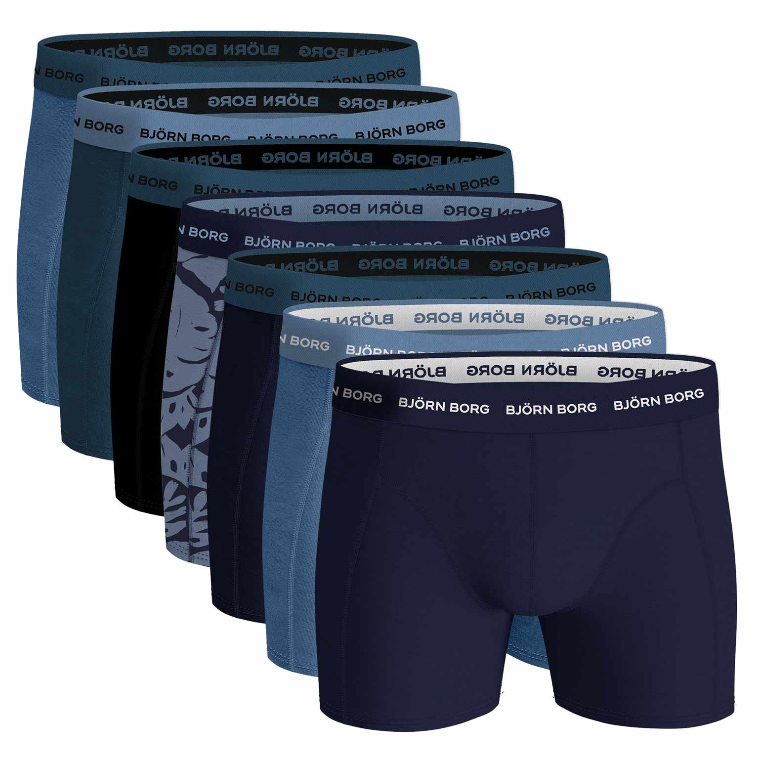 Je bent de hele week gedekt met deze 7-dagen multipack uit de Essential Cotton-serie. De Essential boxershorts zijn gemaakt van lichter katoen dan de shorts uit de Premium Cotton-serie, maar zijn uiterst geschikt voor dagelijks gebruik wanneer je niet te veel van je boxer vraagt. De boxers zijn verkrijgbaar in verschillende kleurencombinaties en hebben een elastische tailleband met het Björn Borg-logo.