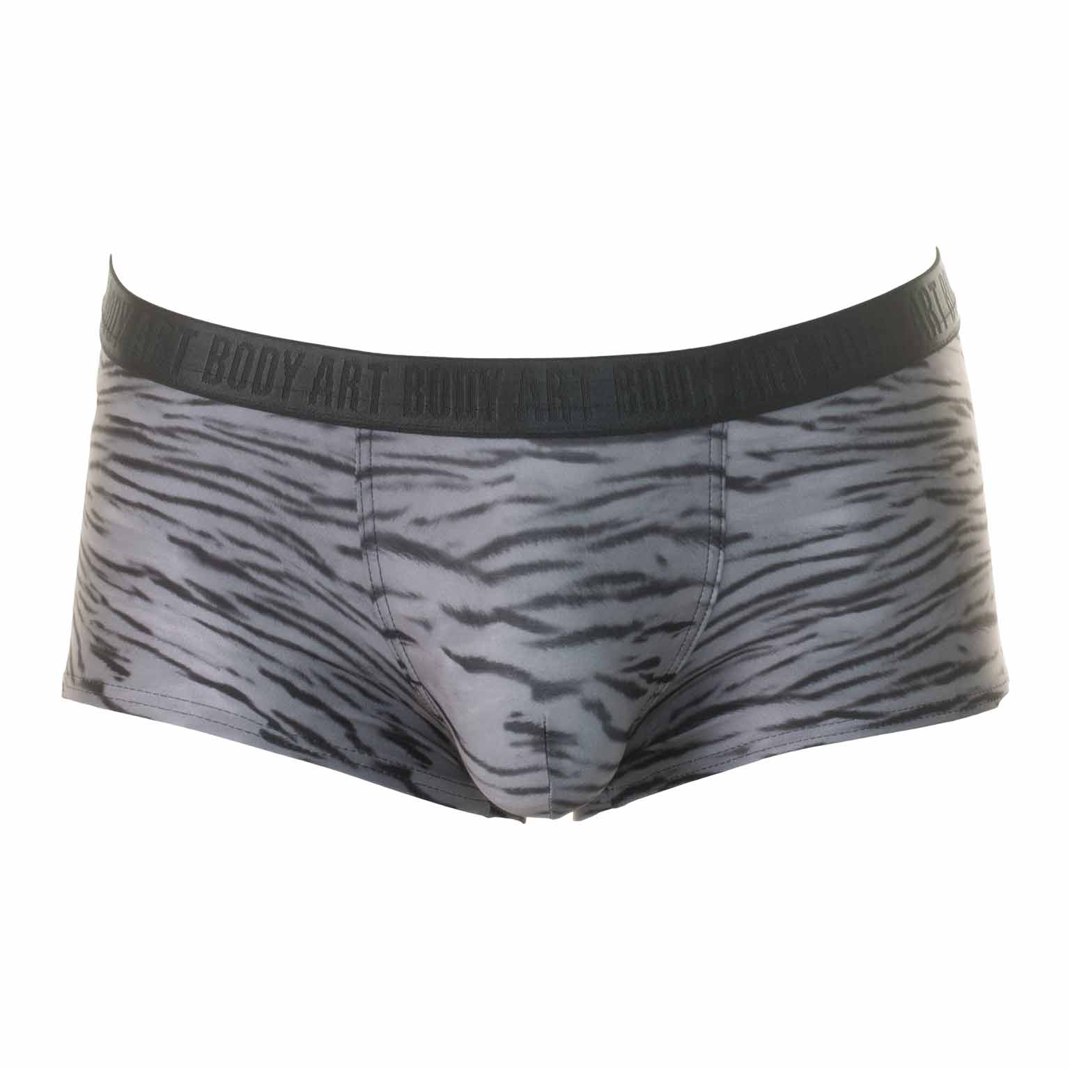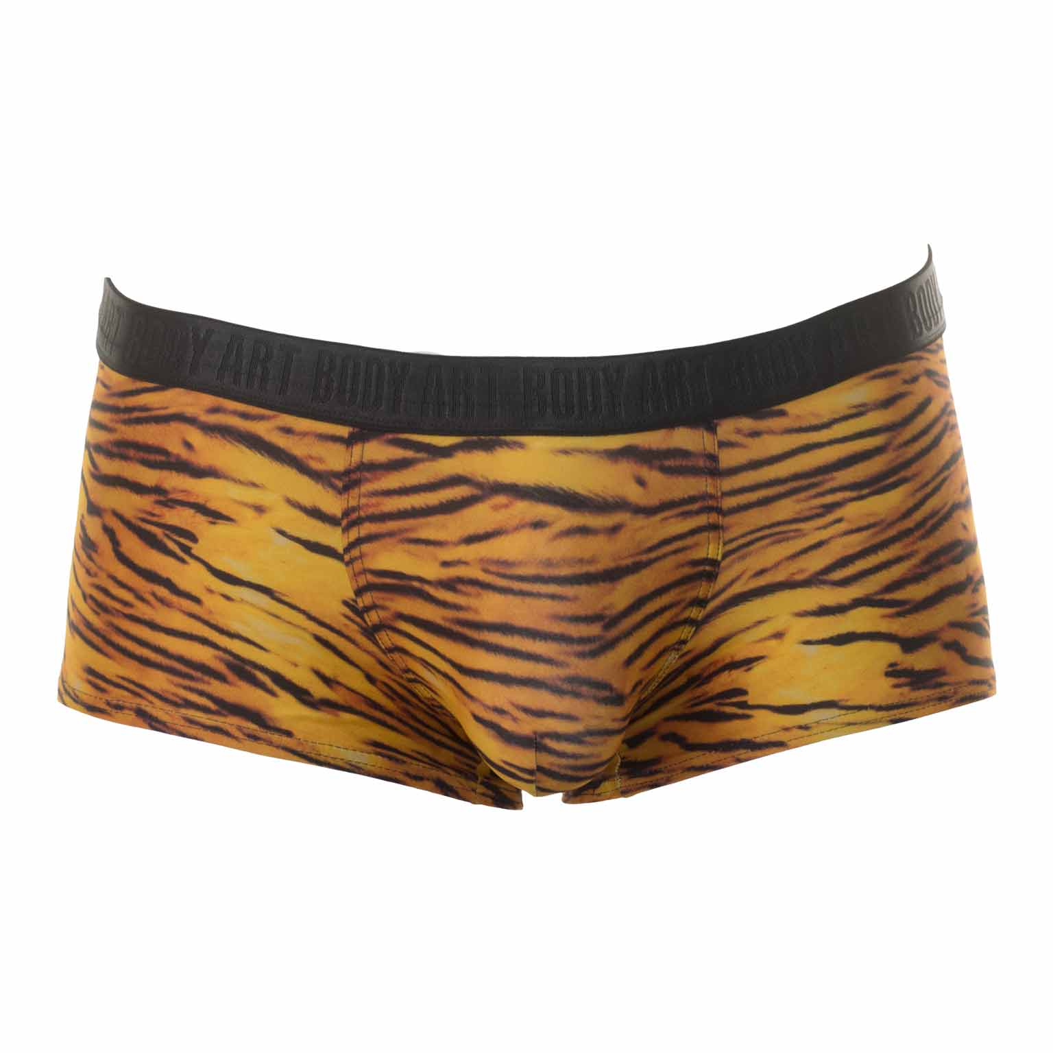 De Hades minipant is stoer en uitdagend met zijn opvallende tijgerprint. De Hades is beschikbaar in een dessert kleur en zilver grijs. De stof is gemaakt van zacht en comfortabel microfiber, wat nauw aansluit op de huid. Door de dunne stof draag je de minipants vrijwel vrijwel onzichtbaar onder strakke kleding. De minipant heeft een labeltje met het Body art logo gecentreerd op de voorzijde van de smalle elastische heupband.