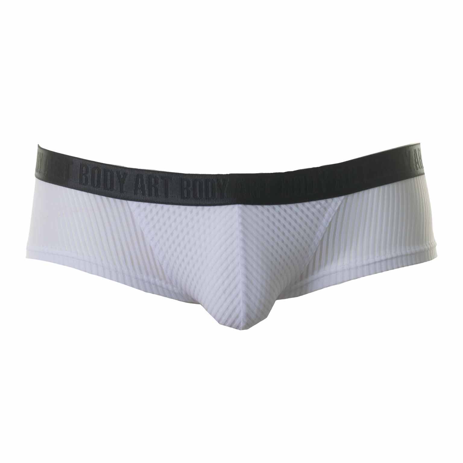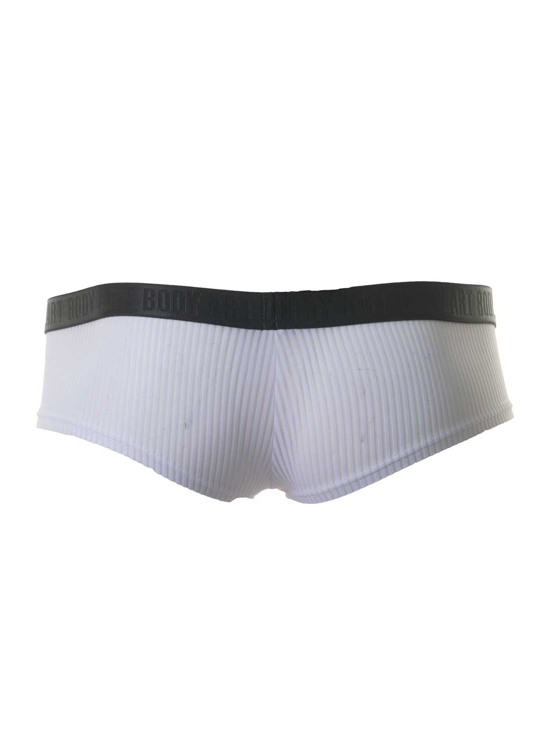 De Rhea hipslip van Body Art is een elegante maar toch uitdagende heren slip die laag op de heupen wordt gedragen. De stof is rondom licht transparant waardoor de huid doorschijnt. De pouch is dubbel gevoerd, waardoor deze niet zo doorschijnend is als de stof rondom en de heupslip nog wat verborgen weet te houden. De stof is gemaakt van zacht en comfortabel microfiber, wat nauw aansluit op de huid zodat deze vrijwel onzichtbaar te dragen is onder strakke kleding. De slip heeft een heupband met daarop het Body Art logo. Beschikbaar in de kleuren wit en zwart.