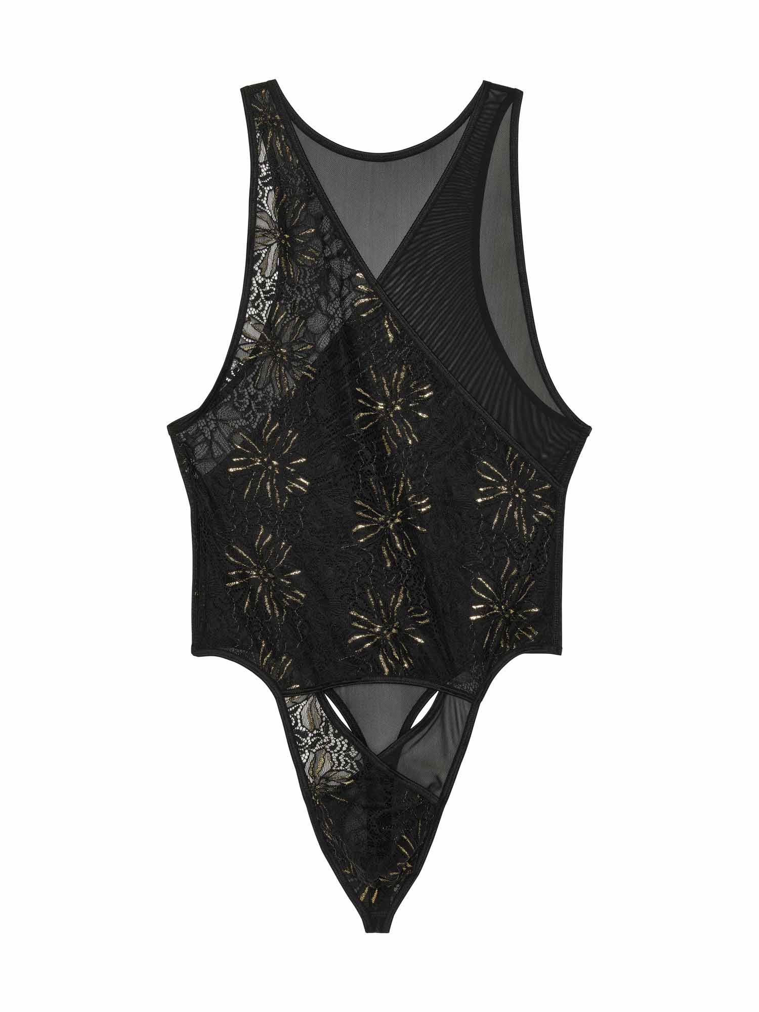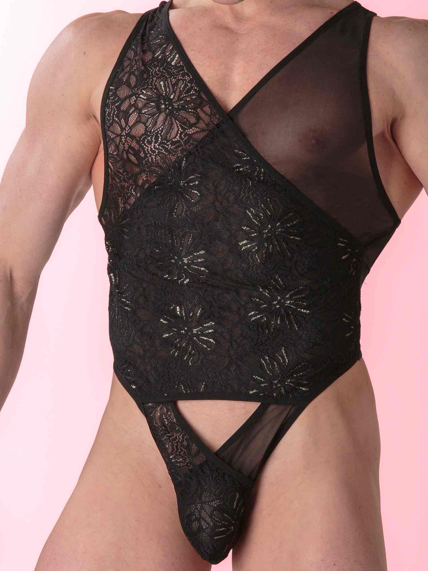 De Pure Seduction Body String van WOH is een uitgesproken en sensueel stuk herenlingerie dat stijl en erotiek moeiteloos combineert. De body is gemaakt van luxe zwart kant met gouden bloemenaccenten en transparant tule dat speels de huid onthult. De asymmetrische snit aan de voorzijde zorgt voor een spannende look, terwijl de string aan de achterzijde het geheel extra gewaagd maakt. Perfect voor wie zich graag van zijn verleidelijkste kant laat zien.