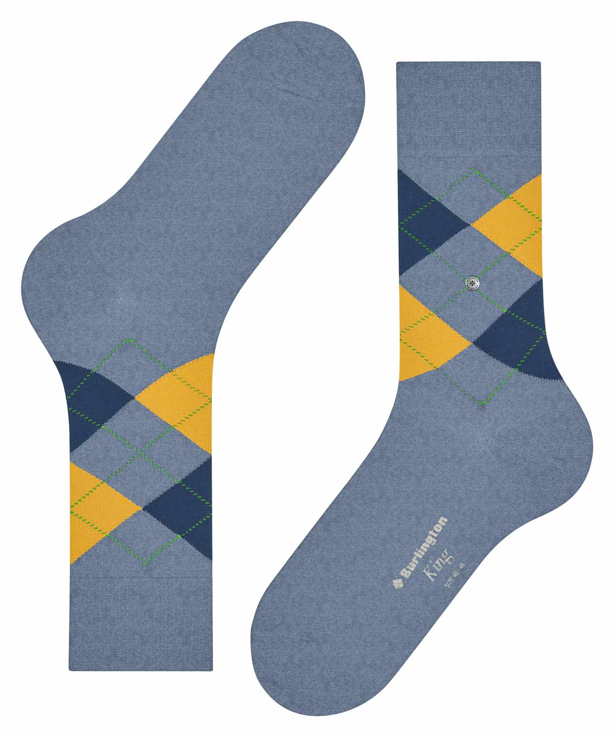 De King sokken van Burlington zijn gemaakt van gekamd katoen en presenteren zich met een uiteenlopend en vrolijk kleurenpalet, met inspiratie van de sneakertrend en anderzijds bezield met jonge, modieuze kleuren. Het argyle-patroon waar het label om bekend staat, weet bovendien de juiste portie stijl toe te voegen aan een elegant design.