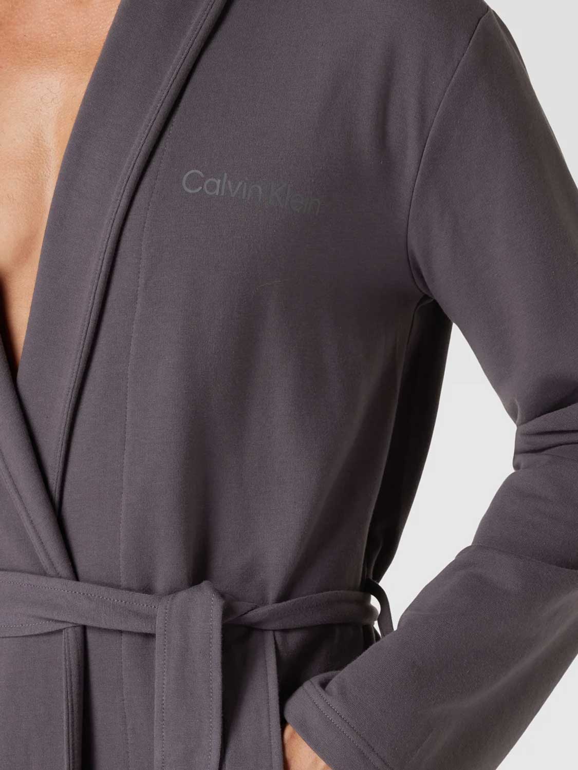Heren badjas van Calvin Klein, gemaakt van een dunne stof. De stof van de badjas voelt zacht aan door de toevoeging van polyester, waardoor een heerlijke mix ontstaat, die lekker zacht op de huid voelt. Door het slanke design oogt de badjas chique en elegant. Een echte blikvanger dus voor in de sauna. De badjas heeft steekzakken aan de linker en rechterzijde en sluit je met de bijbehorende riem in gelijke stof en kleur.
