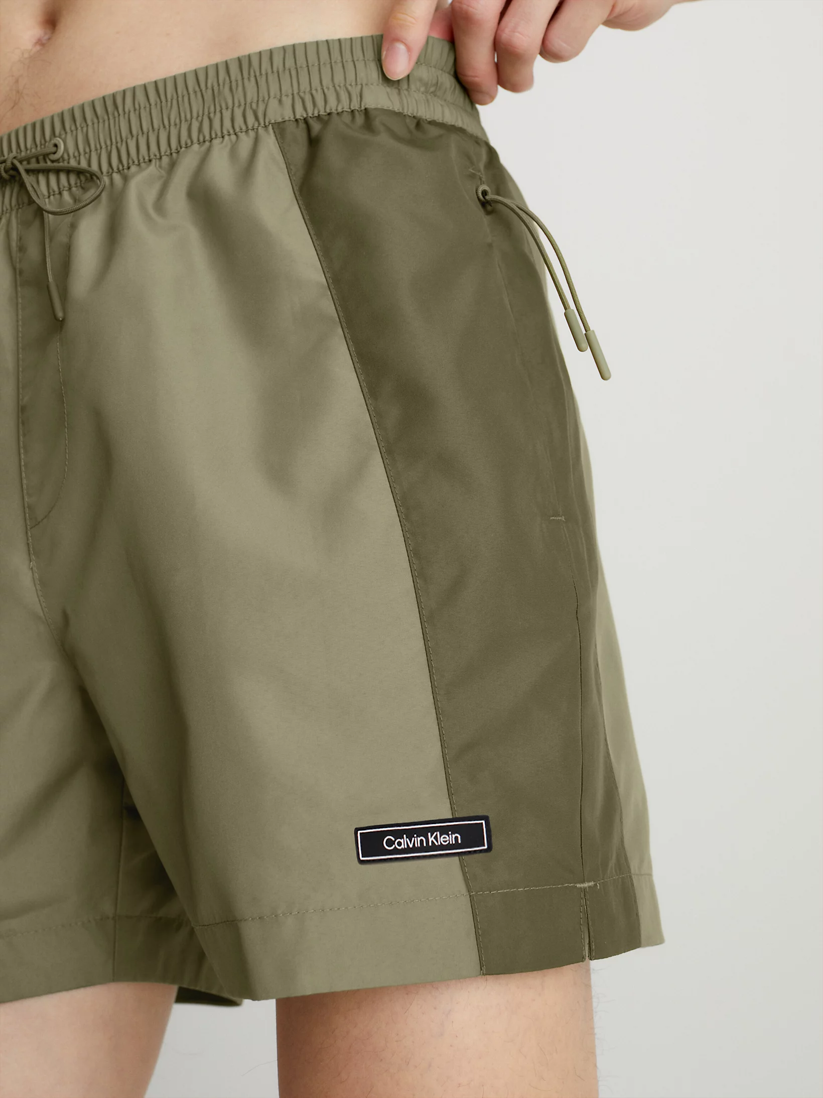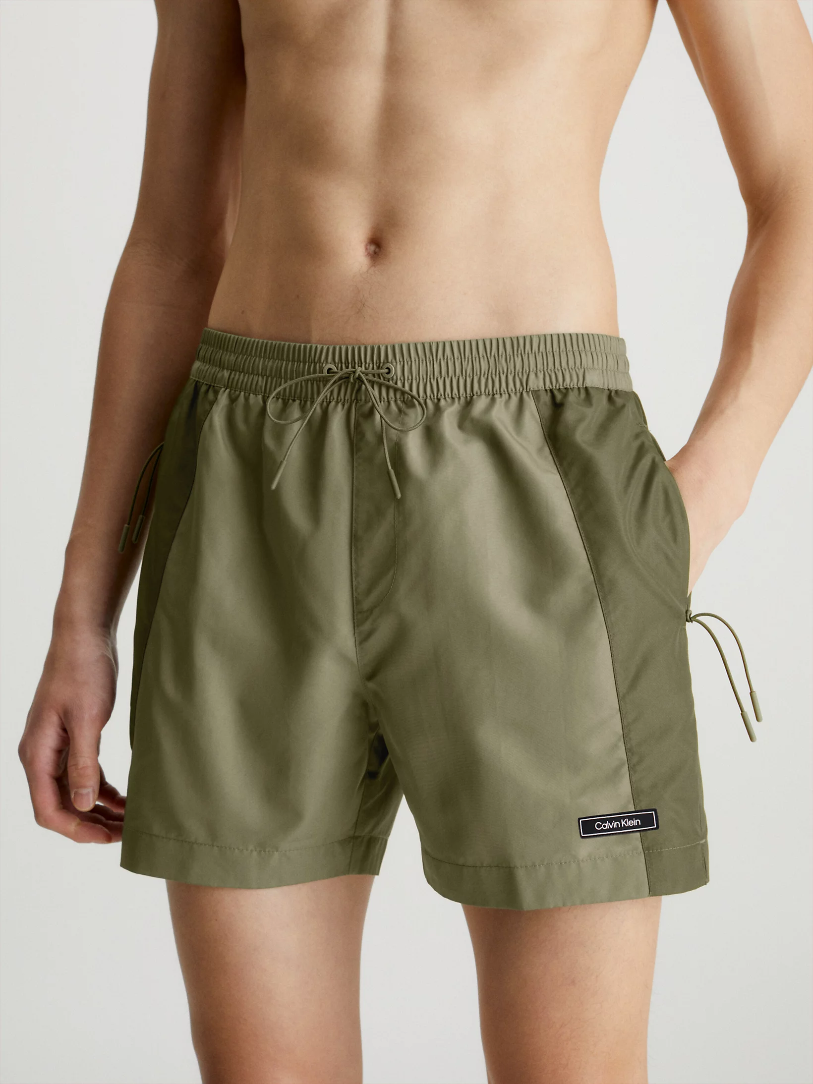 Stoere zwembroek van Calvin Klein met een opvallend ton sur ton effect op de zijkant van het short. Het zwemshort is gemaakt van 100% gerecycled polyester, wat snel droogt na een frisse duik. In de elastische tailleband bevindt zich een trekkoord om het zwemshort perfect op maat te brengen! Het zwemshort heeft handige steekzakken aan de linker en rechterzijde en een binnenbroek gemaakt van mesh materiaal voor een comfortabele fit. Het zwemshort heeft een moderne medium lengte.
