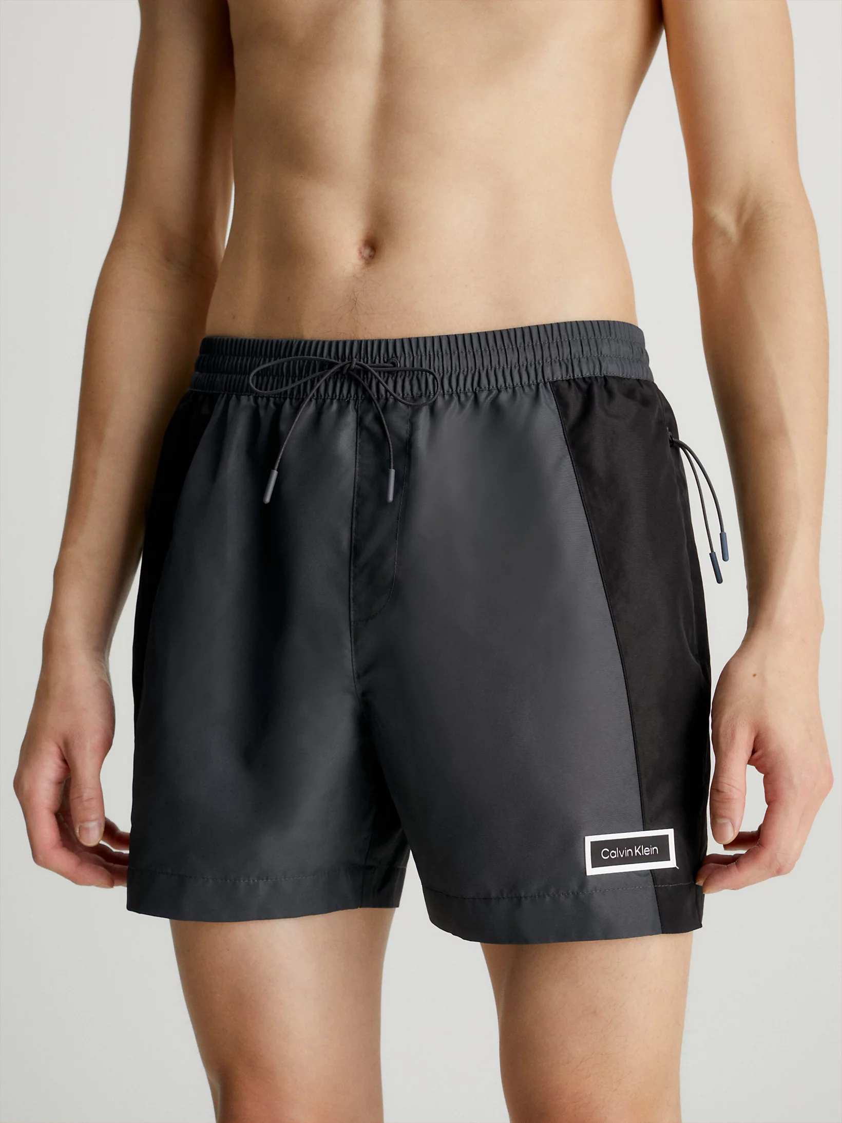 Stoere zwembroek van Calvin Klein met een opvallend ton sur ton effect op de zijkant van het short. Het zwemshort is gemaakt van 100% gerecycled polyester, wat snel droogt na een frisse duik. In de elastische tailleband bevindt zich een trekkoord om het zwemshort perfect op maat te brengen! Het zwemshort heeft handige steekzakken aan de linker en rechterzijde en een binnenbroek gemaakt van mesh materiaal voor een comfortabele fit. Het zwemshort heeft een moderne medium lengte.