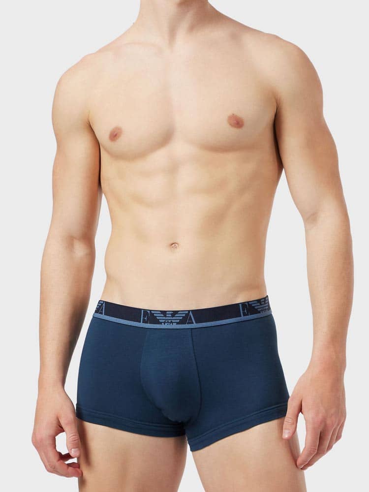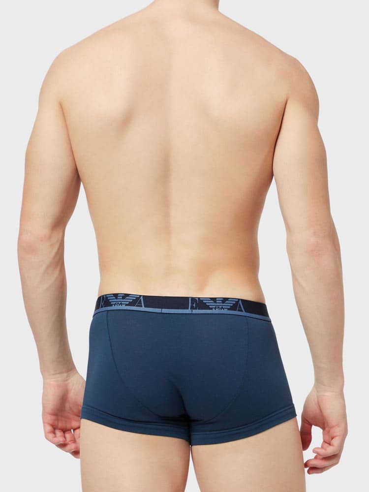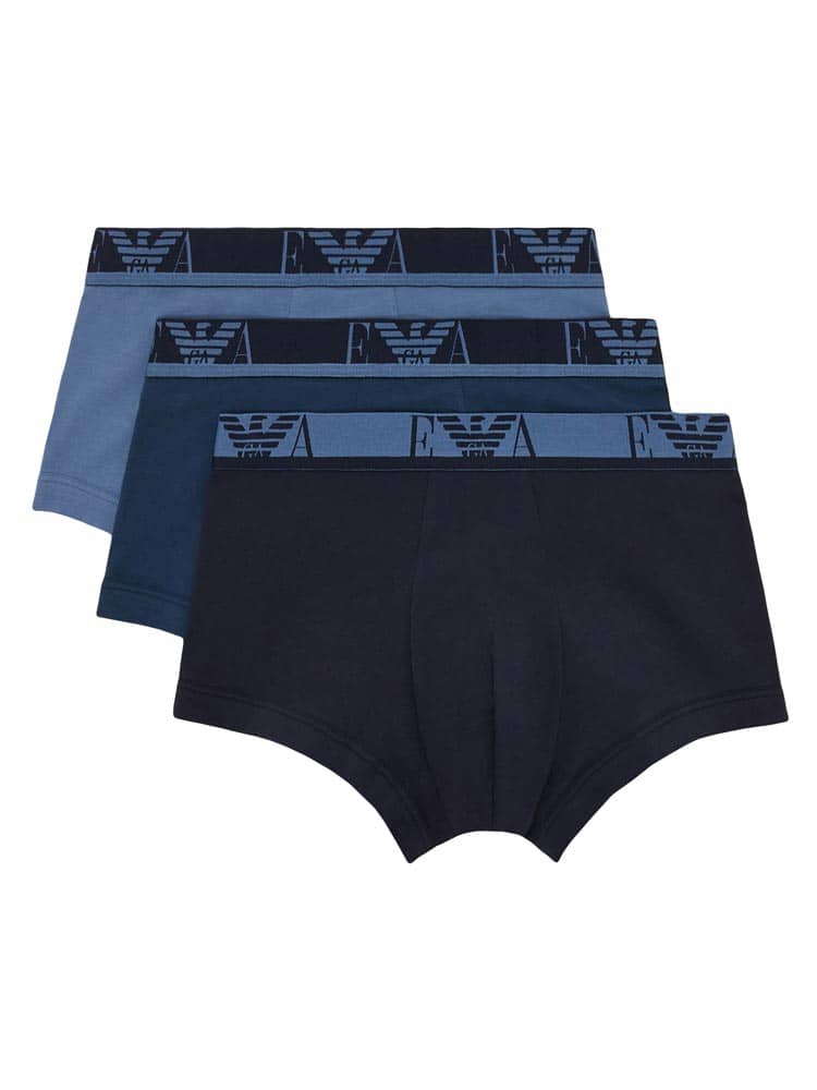 3 Boxershorts van Emporio Armani in een trunk model, uitgevoerd in een uni-kleur en gemaakt van comfortabel stretch katoen. De boxers hebben een uitgesneden pouch en geven de billen extra ondersteuning door de signature cut. De boxer set is verkrijgbaar in diverse kleurcombinaties. De heupband is uitgevoerd met de signature EA eagle.