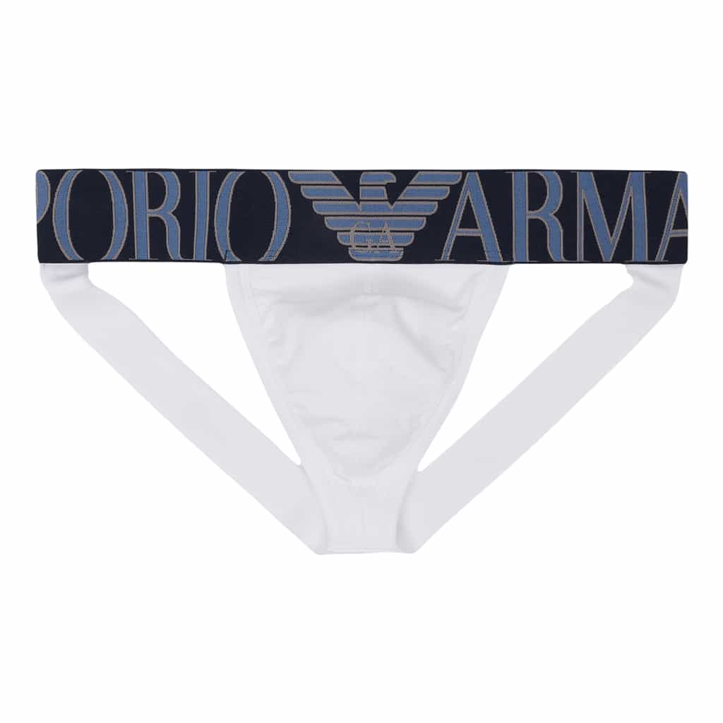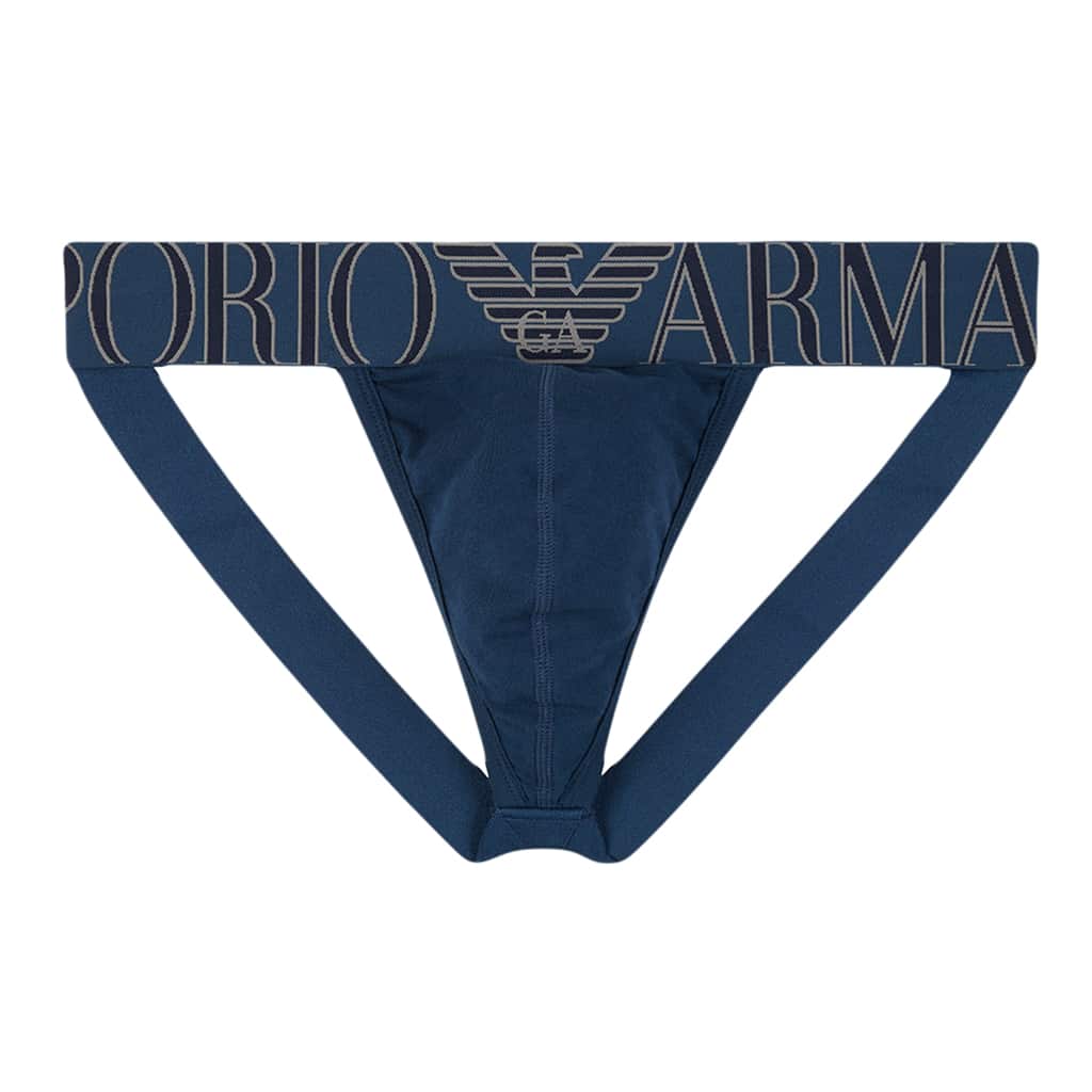 Jockstrap van Emporio Armani met brede elastische heupband met het logo en de kenmerkende eagle in een contrasterende kleur. De jockstrap is gemaakt van comfortabel stretch katoen en heeft brede straps voor extra ondersteuning. Beschikbaar in diverse kleuren.