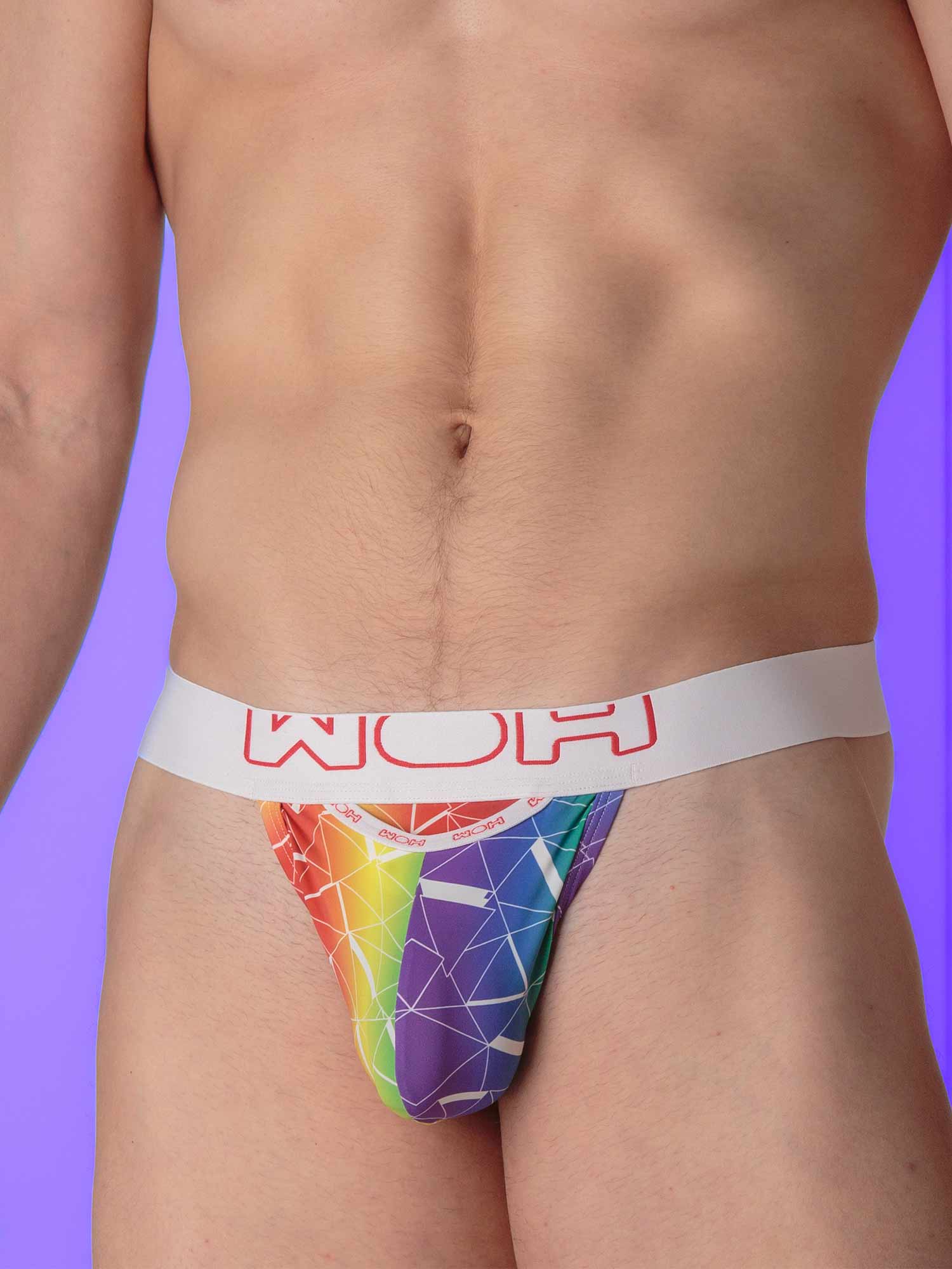 De Sexy Fun G-String van WOH is een brutale en kleurrijke must-have. De regenboogprint in combinatie met de sportieve witte tailleband met rood WOH-logo zorgt voor een vrolijke en sexy uitstraling. De string zit strak tegen de huid en biedt precies genoeg ondersteuning terwijl hij je achterkant volledig vrijlaat. De speciaal gevormde pouch laat je mannelijkheid extra goed uitkomen en zorgt voor ultiem draagcomfort.