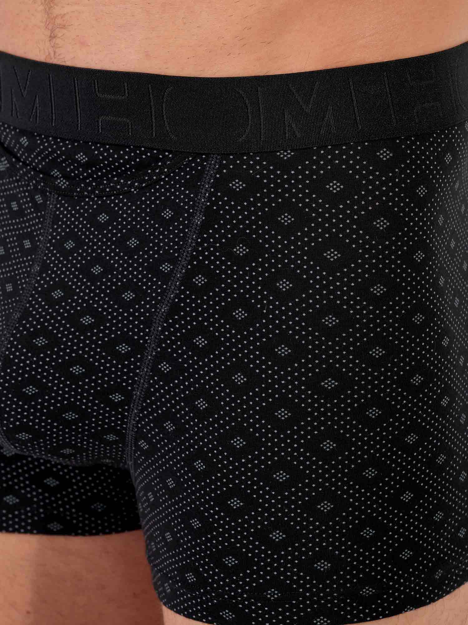 De boxers zijn uitgevoerd in effen zwart en met een verfijnde microprint in stropdasstijl. De pouch aan de voorzijde is gevoerd voor extra ondersteuning, en de elastische tailleband is rondom voorzien van het subtiele HOM-logo. Een ideale keuze voor wie comfort en stijl wil combineren.