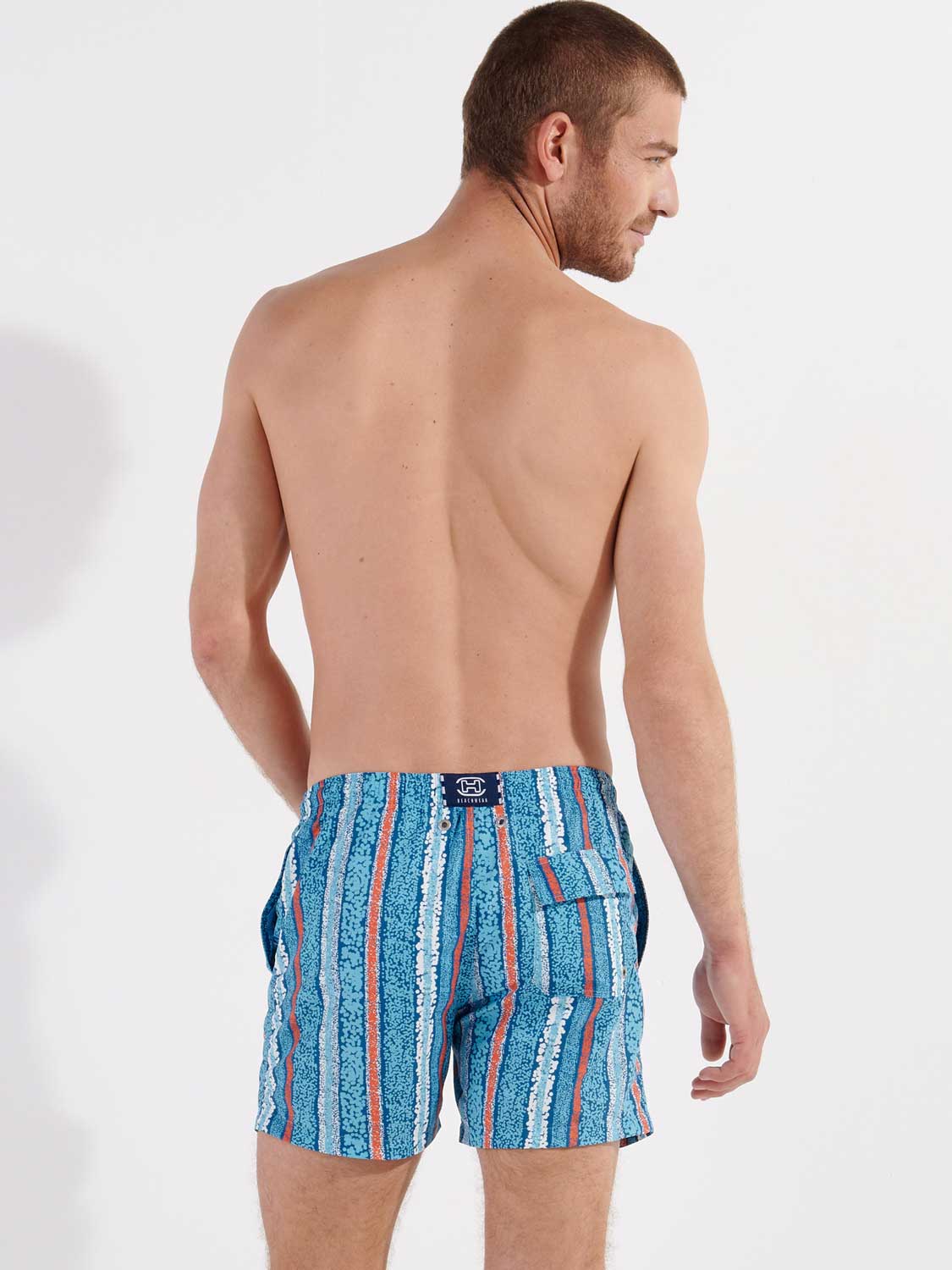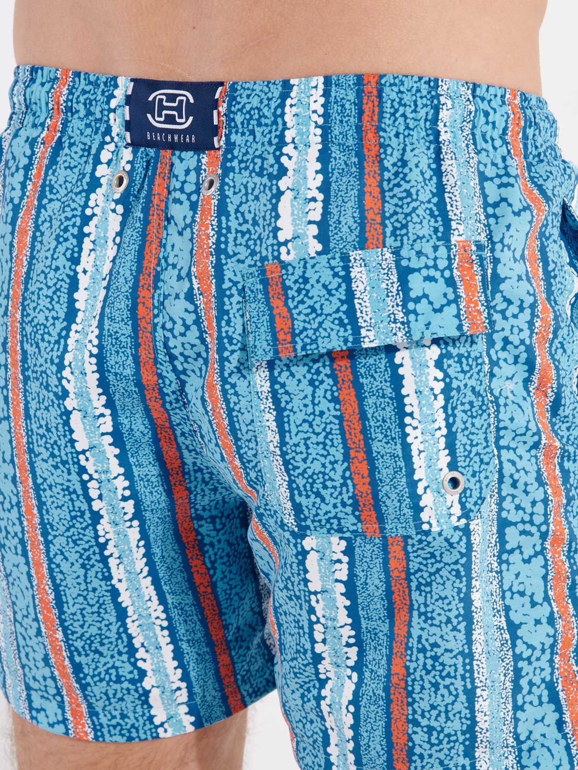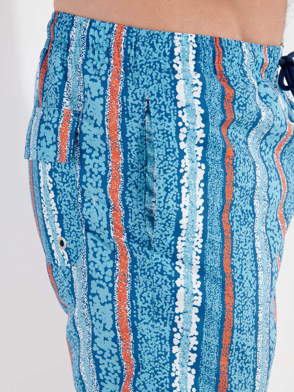 De Harrisson - Beach Boxer heeft een eigentijdse print met verticale lijnen in de kleuren blauw, wit en oranje. Samen met de steekzakken aan de linker en rechterzijde en het kontzakje achterop heeft de Harrison Beach boxer een eigentijdse look. Het zwemshort beschikt over een binnenbroek voor extra comfort en ondersteuning. Het trekkoord in de heupband zorgt ervoor dat je de Harrison - Beach Boxer perfect op maat kunt brengen, zodat je met een gerust hart een frisse duik kunt nemen. De stof is gemaakt van polyester waardoor de Beach Boxer snel droogt. Ideaal voor op het strand of als je daarna nog het terras op wilt.