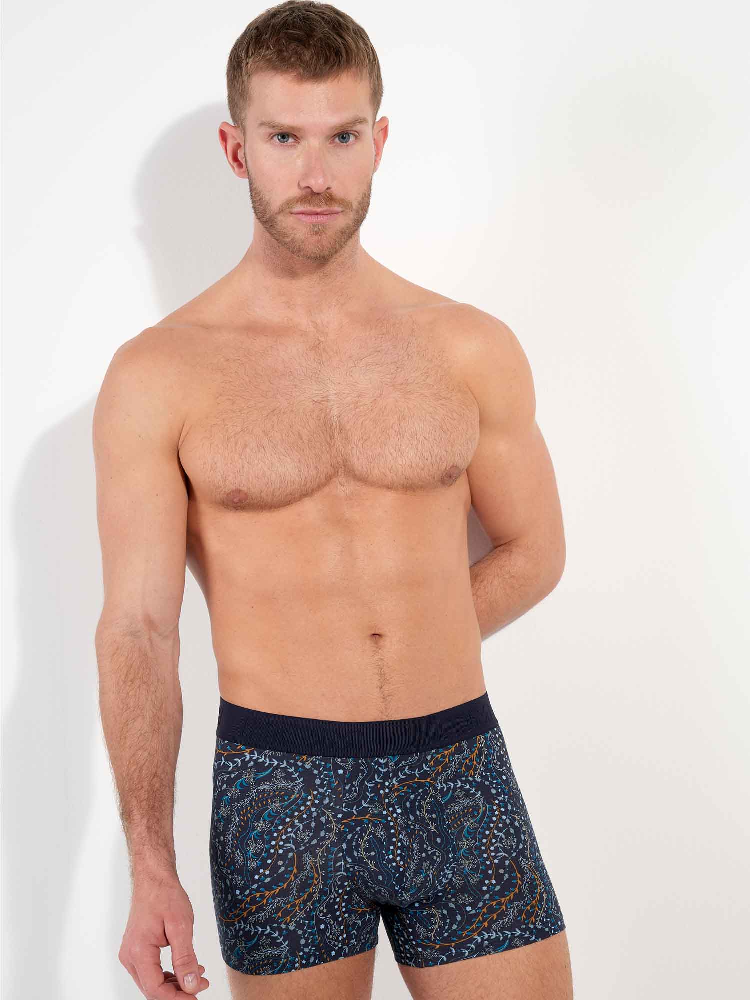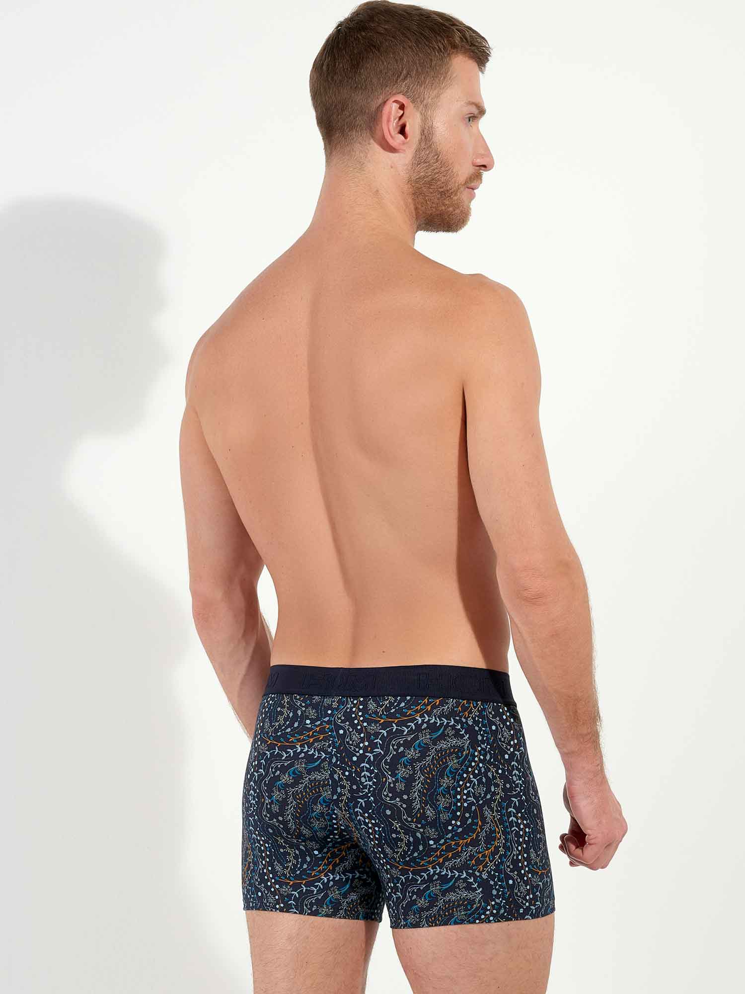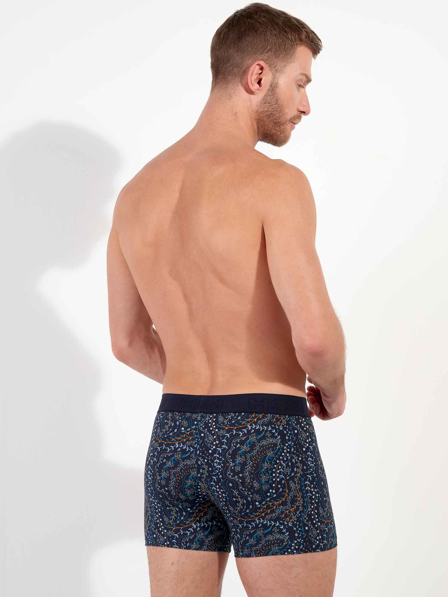 De Fontainebleau boxer briefs combineren een comfortabele pasvorm met een stijlvolle, natuurlijke uitstraling. Het botanische dessin, met fijne takjes en bladeren op een donkerblauwe achtergrond, geeft een subtiel seizoenstintje zonder in te leveren op elegantie. De ademende katoen-modal stof en zachte voering aan de voorzijde zorgen voor een aangenaam draaggevoel, de hele dag door.