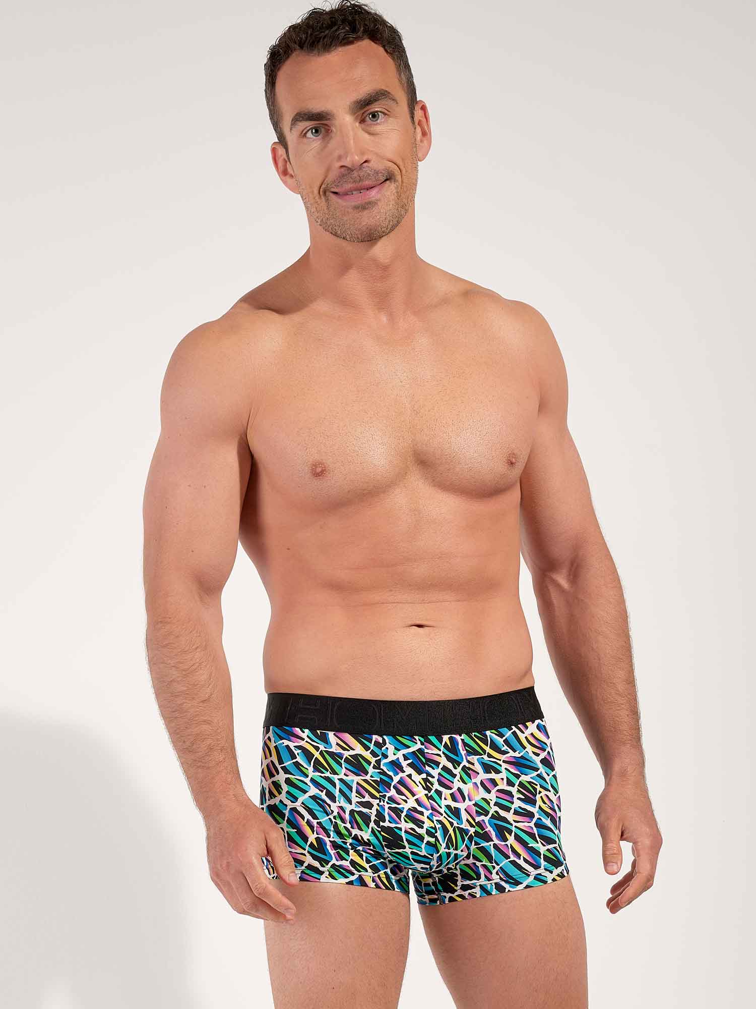 De Funky styles - Boxer Briefs is gemaakt van een comfortabele microfiber. Deze heren boxer is onderdeel van de Funky Style collectie en heeft daarmee een opvallende modieuze print. De elastische heupband is gemaakt van katoen met daarop het HOM Logo in ton sur ton.