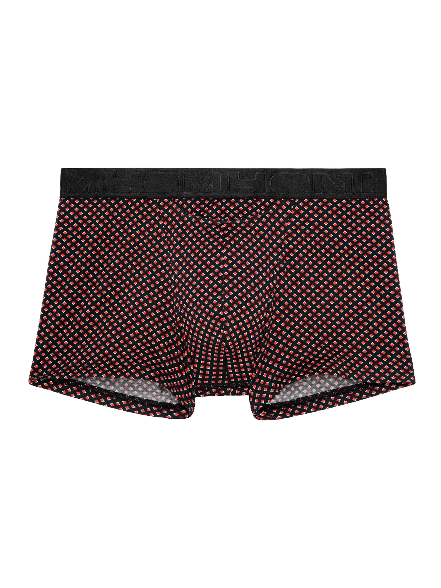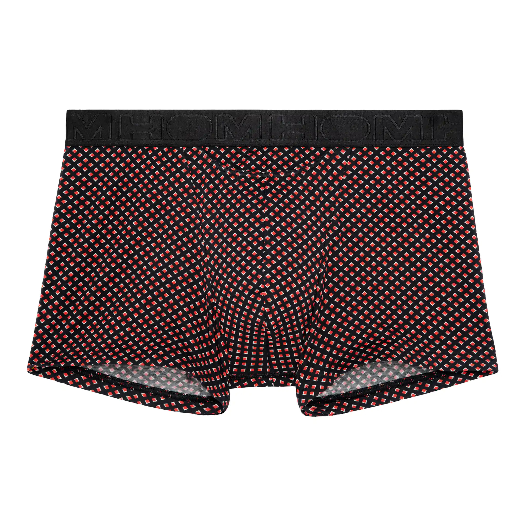 De Murray - HO1 Boxer Brief is gemaakt van een comfortabele katoenmodal mix en uitgevoerd met de bekende 'horizontale gulp' van HOM. De Murray heeft een 2 kleurtonen print met een diamantpatroon in wit en rood op een zwarte achtergrond. De katoenmodal mix voelt zacht aan en zorgt voor een pasvorm die goed aansluit op het lichaam. Daarnaast heeft katoenmodal goede absorberende en ademende eigenschappen, waardoor je veel minder snel warme klamme plekken krijgt in je ondergoed. Doordat katoen en modal beide een natuurlijke oorsprong hebben, is de Murray geschikt voor iedere man die graag natuurlijke stoffen draagt. Bij normaal gebruik is de stof goed bestand tegen krimpen en slijtage door wrijving. De boxershort heeft een brede elastische heupband, met het logo van HOM rondom.