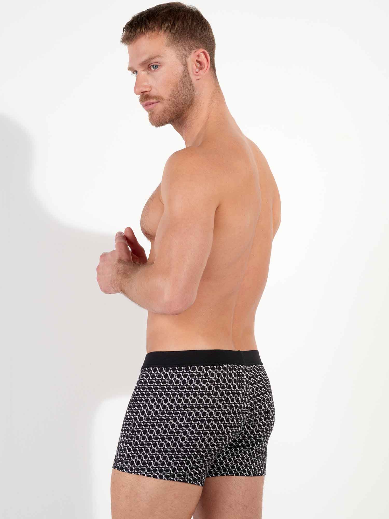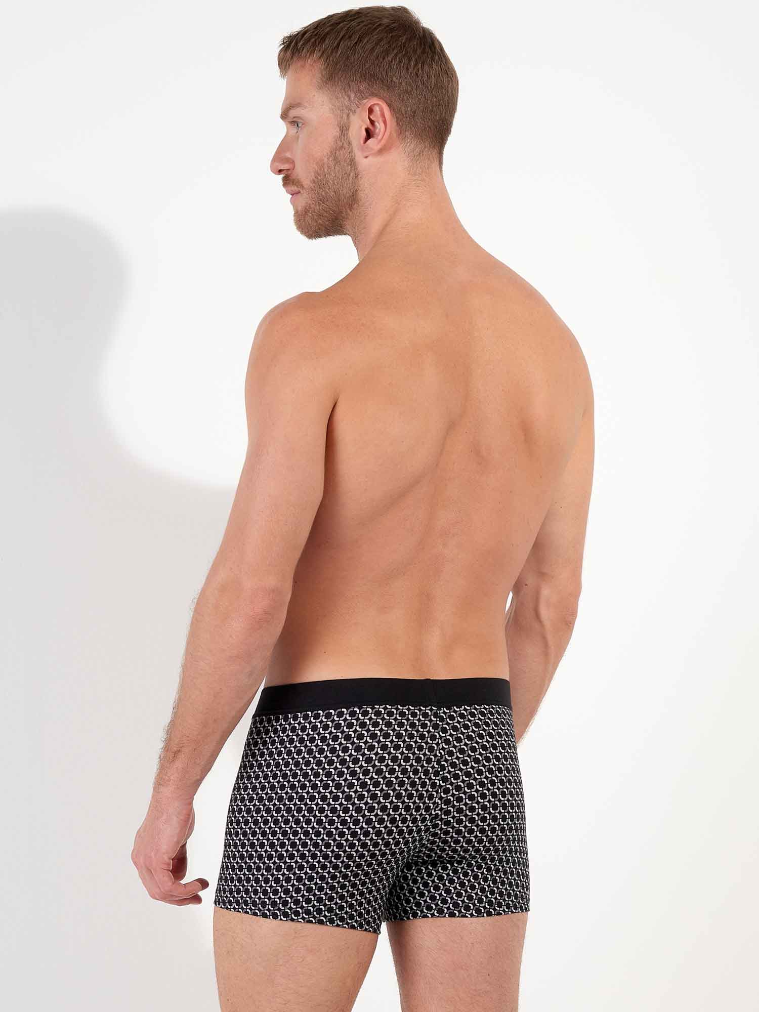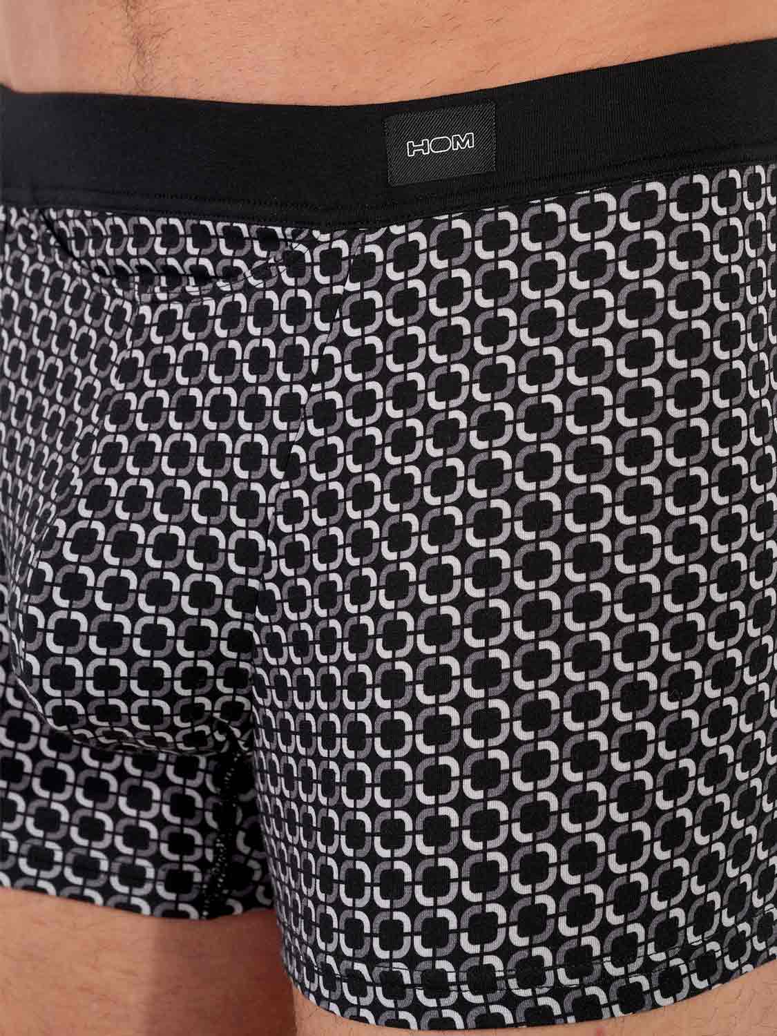 Waldorf – Comfort Boxer Briefs HO1 combineren tijdloze elegantie met verfijnd comfort. De hoogwaardige katoen-modal mix voelt zacht aan en ademt goed, ideaal voor dagelijks gebruik. De boxer briefs zijn voorzien van een stijlvol zwart-wit geometrisch patroon en de iconische HO1-opening van HOM voor extra gemak. De pijpuiteinden zijn afgewerkt met zacht voile voor een onzichtbare overgang onder je kleding. De comfortband is voorzien van een met stof gevoerd elastiek dat prettig aanvoelt op de huid en optimale ondersteuning biedt zonder te irriteren.