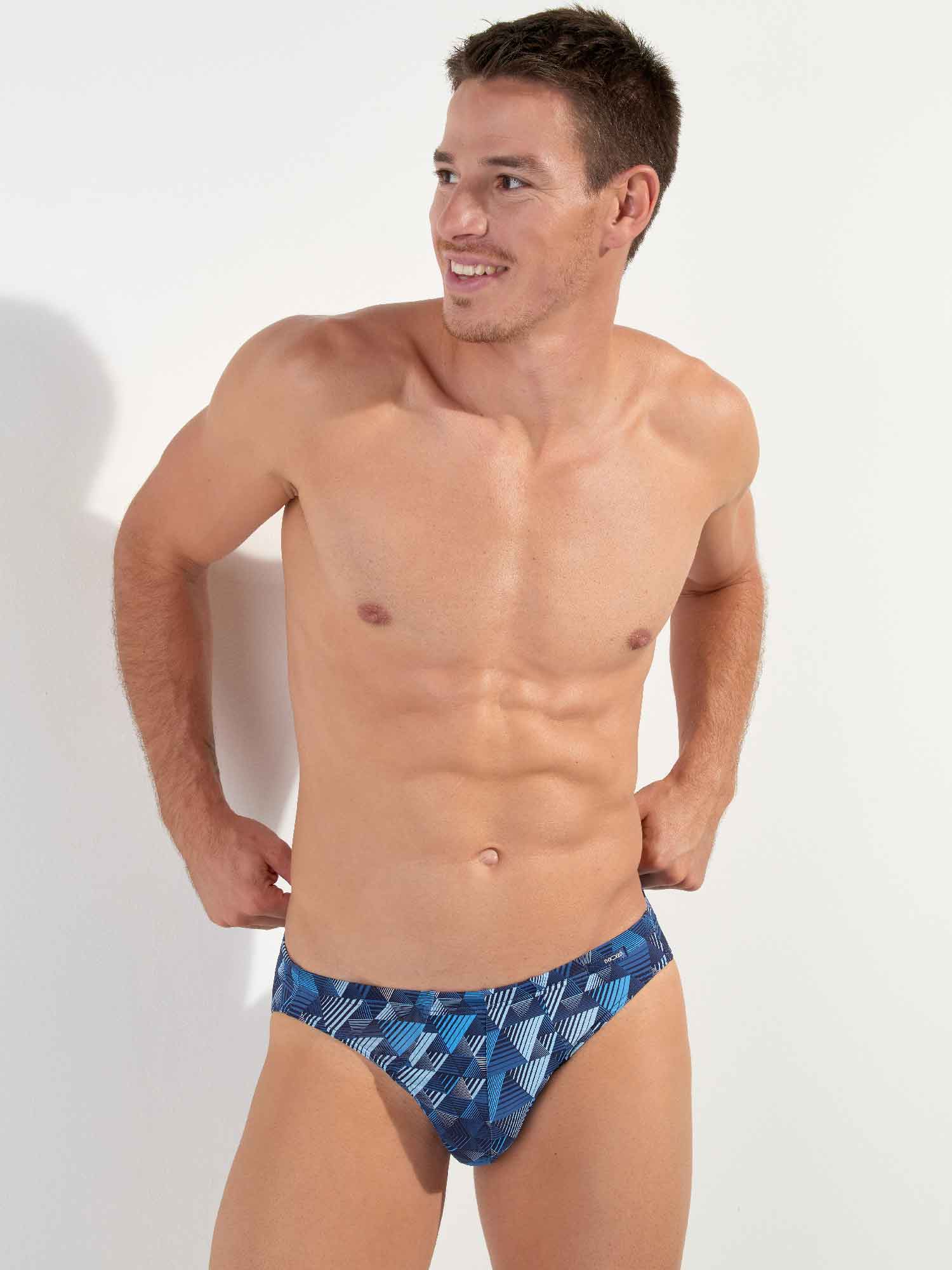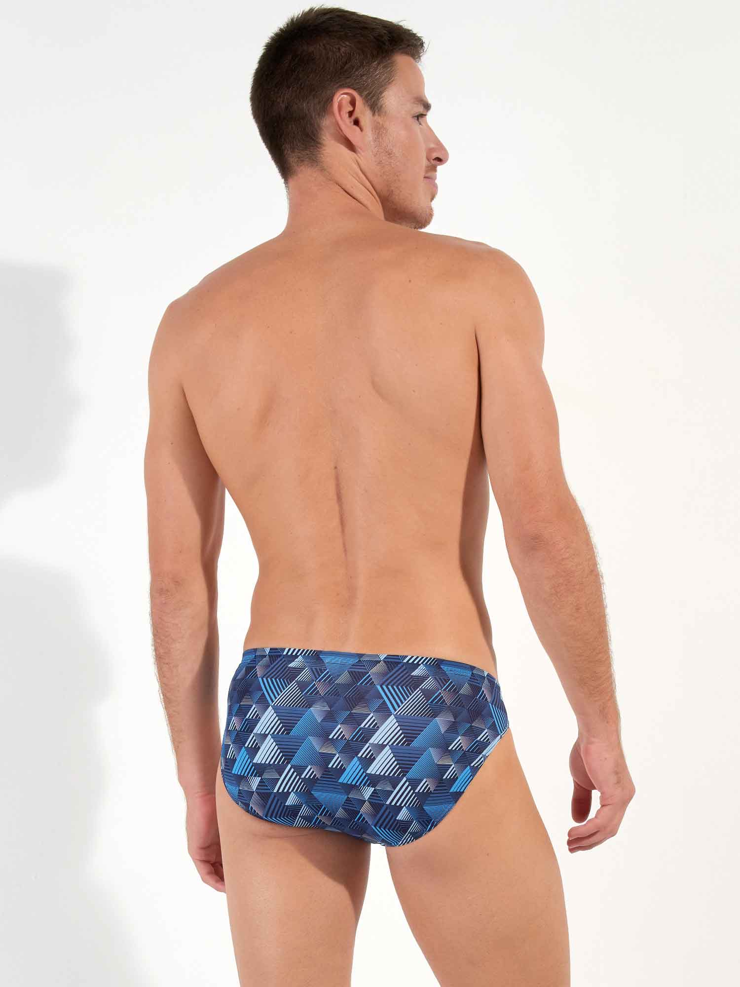 De Mekong - Comfort Micro Briefs is gemaakt van een comfortabele microfiber en uitgevoerd met een comfort heupband, waarbij de stof tot over de elastische band is getrokken, voor optimaal comfort. Deze heren slip heeft een hedendaagse print met geometrische driehoeken in blauwtinten. Links voor op de comfortband is een klein labeltje geplaatst met het HOM logo.
