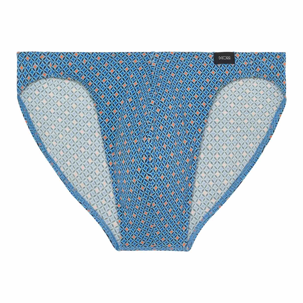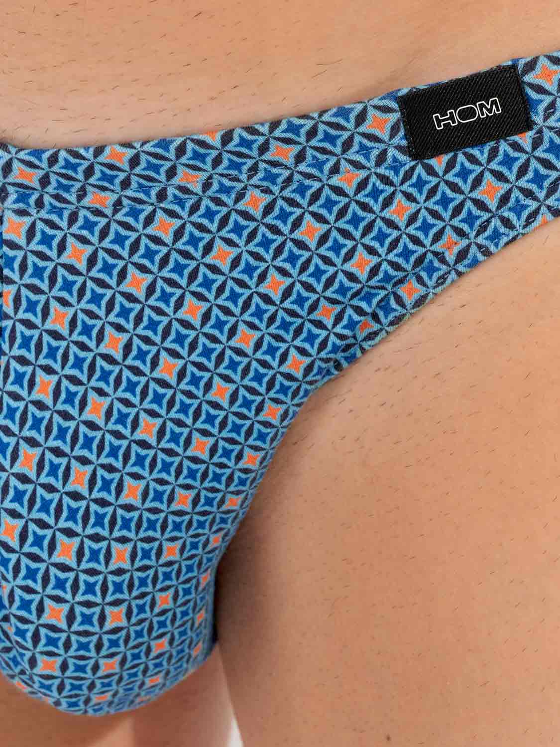 De Stars - Comfort Micro Briefs is gemaakt van hoogwaardig katoenmodal en uitgevoerd met een comfort heupband, waarbij de stof is doorgetrokken en naar binnen is geslagen over de elastische band voor extra comfort. De heren micro slip heeft een eigentijds motief met blauwe en oranje sterren. Linksvoor op de comfortband is een klein label van HOM geplaatst.