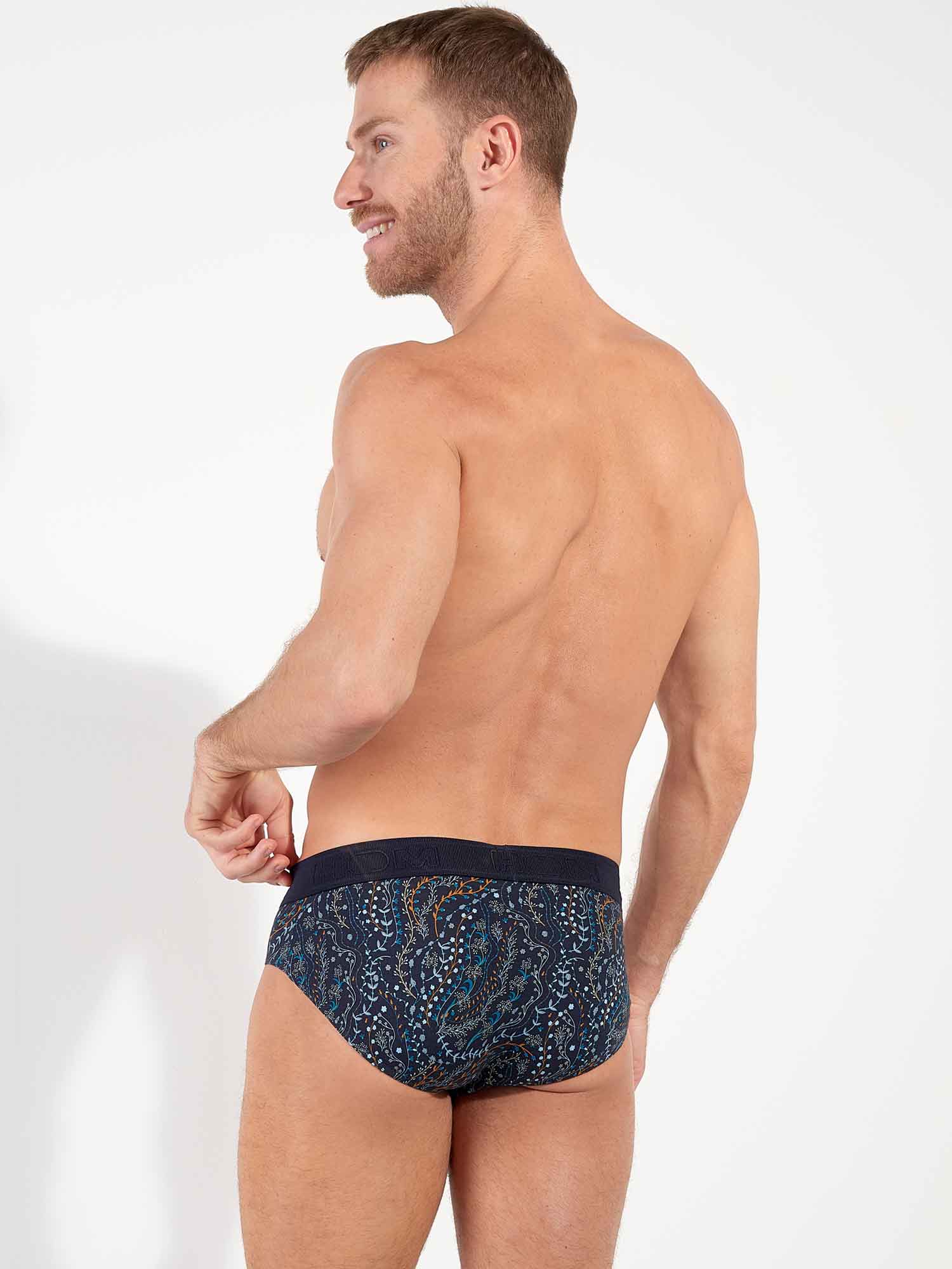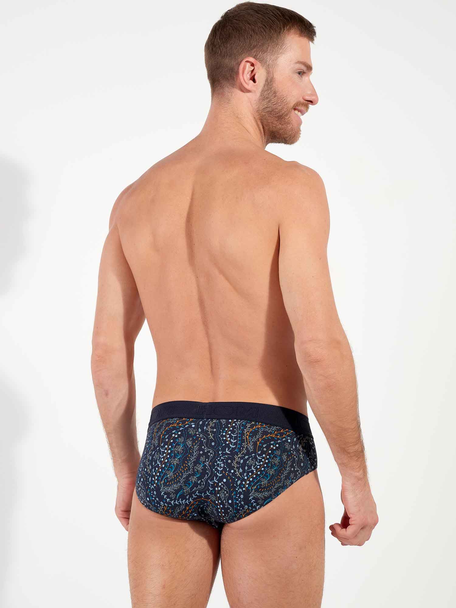 Geïnspireerd op de verfijning van de natuur, omhullen de Fontainebleau mini briefs het lichaam in een zachte katoen-modal mix met een sierlijke botanische print van fijne takjes en bladmotieven op een diepblauwe achtergrond. De elastische voering aan de voorzijde geeft subtiele ondersteuning, terwijl de voile afwerking bij de benen zorgt voor een naadloos gevoel tegen de huid. HOM-kwaliteit op z’n best – voor de moderne man met gevoel voor klasse en comfort.