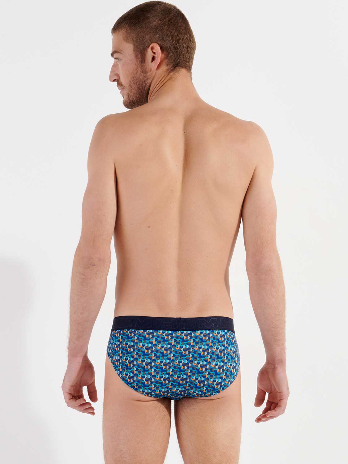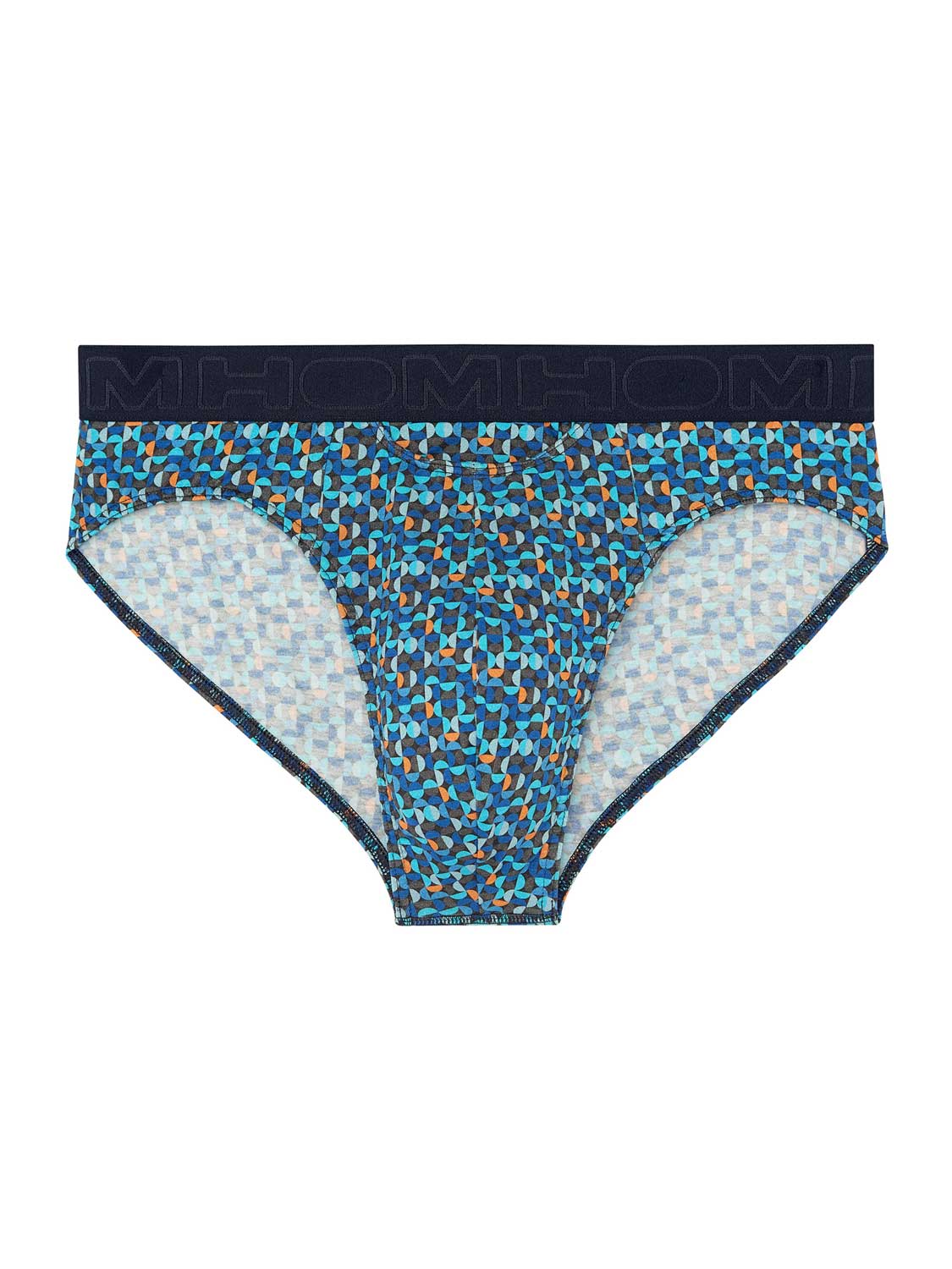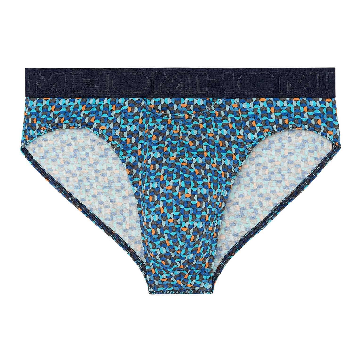 De Ralphy - HO1 Mini Briefs is gemaakt van hoogwaardig katoenmodal en uitgevoerd met de 'horizontale opening', de speciale gulp voor extra gemak, waar HOM bekend om staat. Deze heren slip is uitgevoerd met een prachtige print in blauw, grijs met oranje accenten op een marine blauwe achtergrond. De Ralphy heeft een elastische heupband met daarop het HOM Logo.