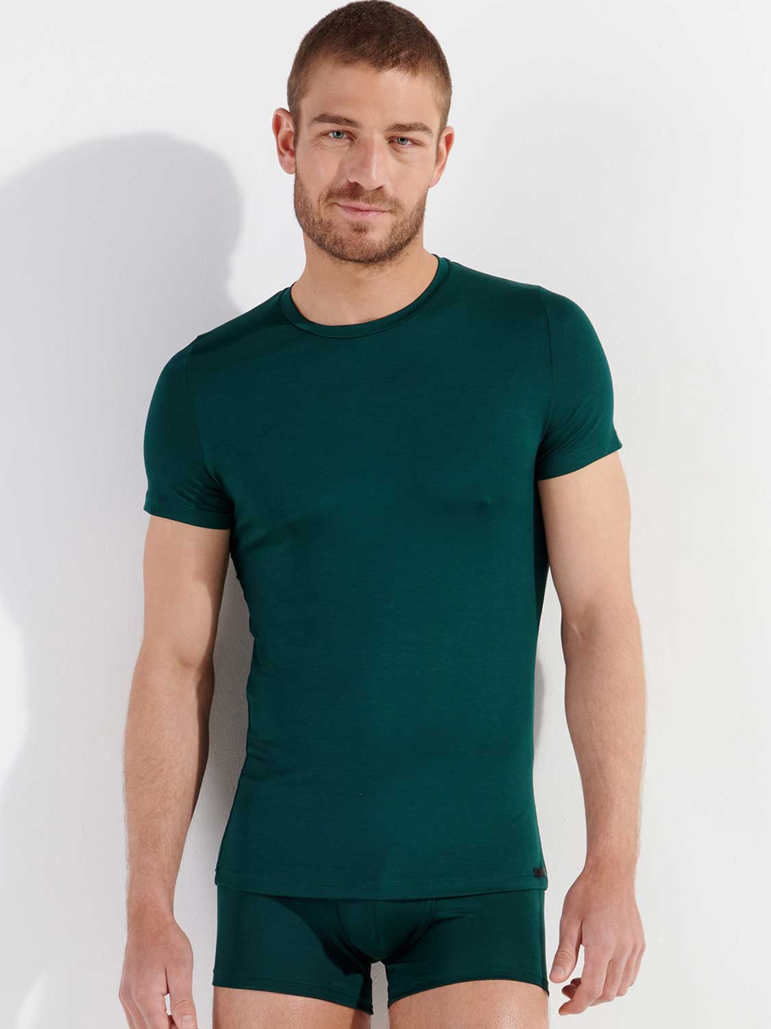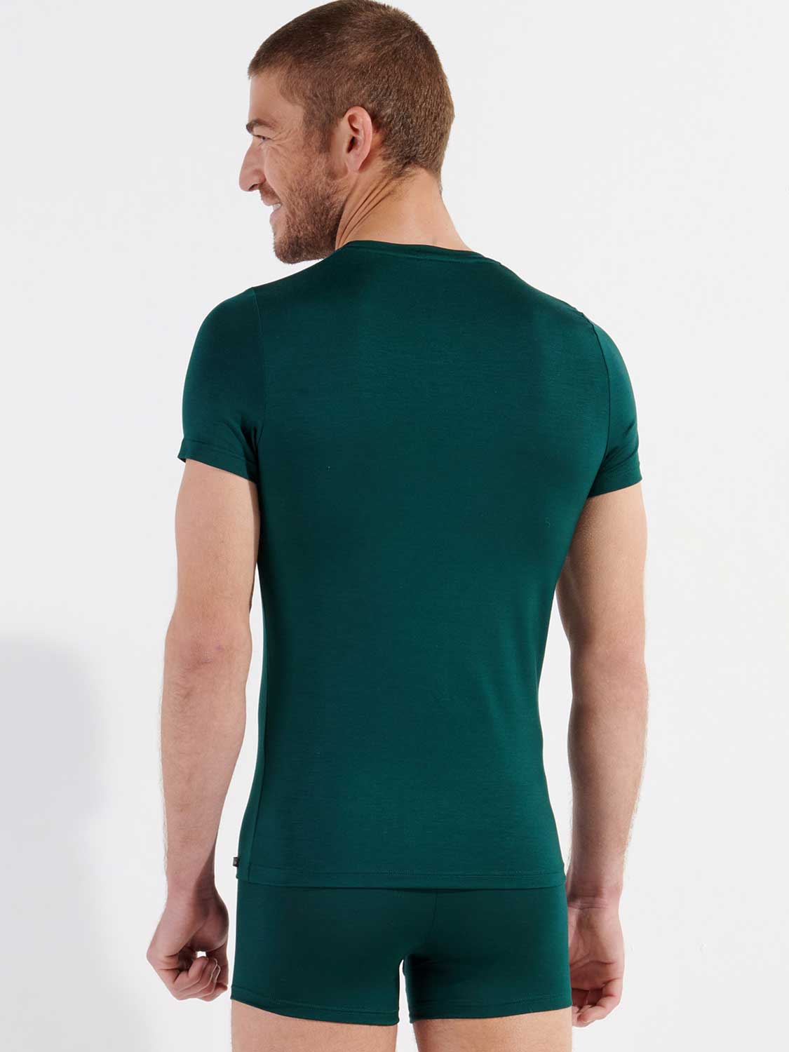 Het TENCEL SOFT T-Shirt is gemaakt van Lyocell. Deze versie beschikt over een ronde hals en heeft een rechte cut die langs het lichaam valt. Het shirt is een basic van zeer hoge kwaliteit met optimaal draagcomfort. De stof Lyocell wordt gewonnen uit houtpulp en absorbeert 4x meer vocht dan katoen. Het productieproces vereist weinig water en beperkt daarmee de milieu-impact. Lyocell kreukt niet en voelt zacht en comfortabel aan. De stof is daardoor uitermate geschikt voor de man die graag natuurlijke stoffen draagt.