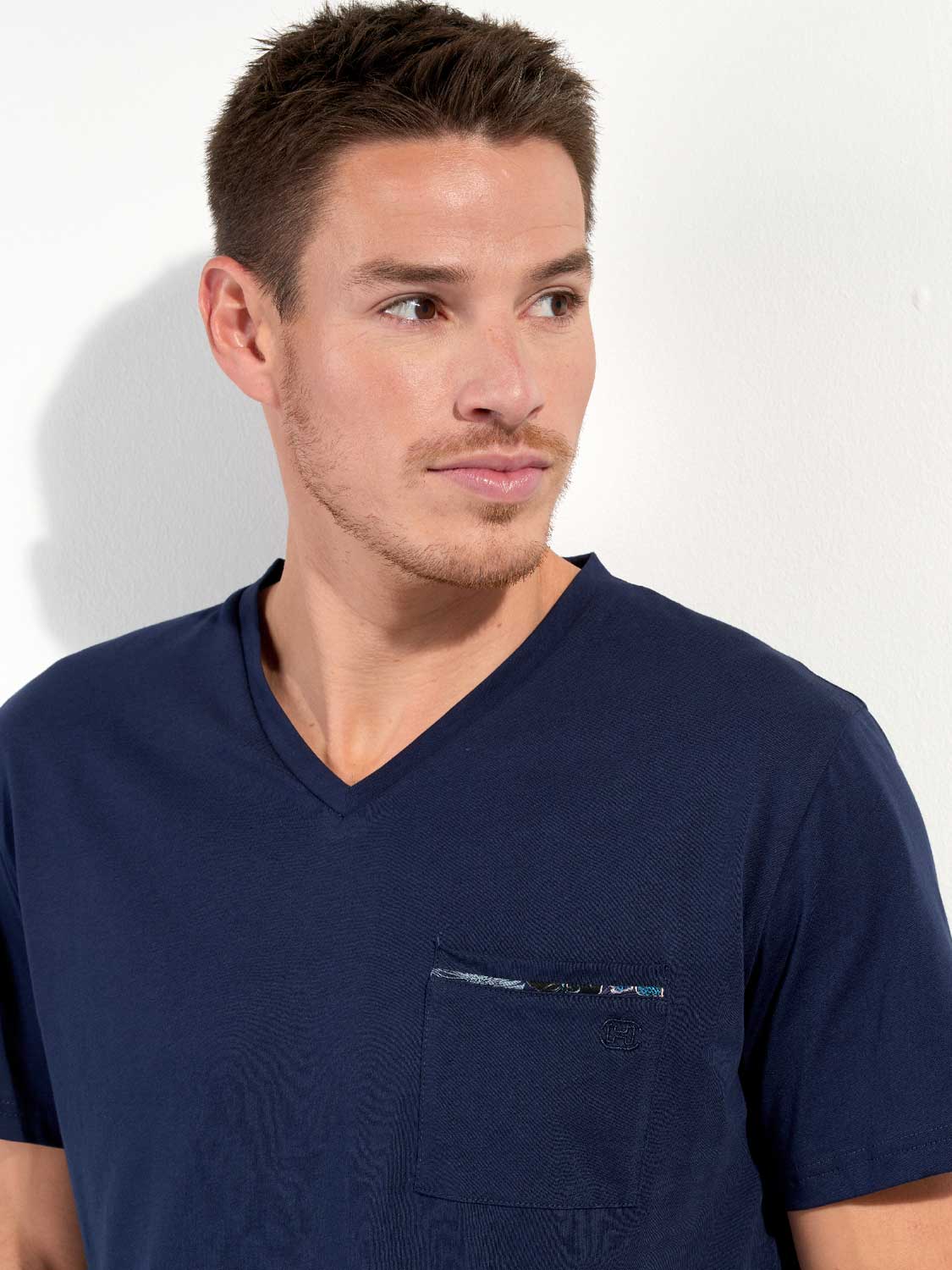 - Effen T-shirt met korte mouwen en een v-hals