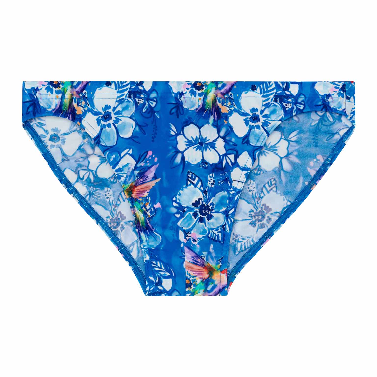 De Colibris - Swim Micro Briefs maken deel uit van de zomercollectie zwemkleding van HOM. Felgekleurde kolibries op een exotisch bloemenmotief in blauwtinten roepen de tropische sfeer van het Caribisch gebied op. De stof is elastisch, sluit mooi aan op de huid en is niet doorschijnend. Omdat dit micro briefs zijn, zitten ze laag op de heupen. Het trekkoord in de tailleband maakt het mogelijk om de zwembroek perfect af te stellen op jouw maat.