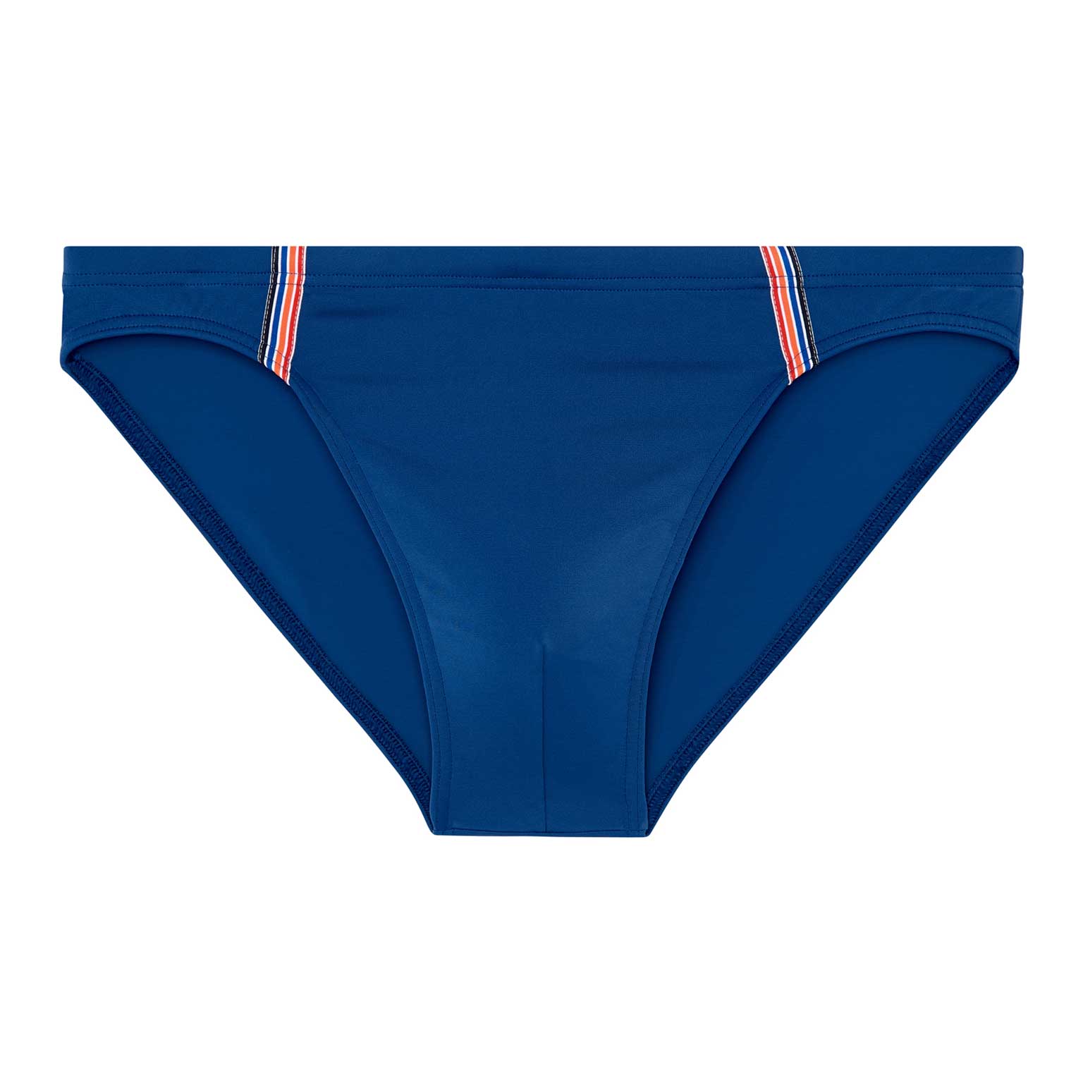 De Nautical Cup- Swim Micro Briefs verkrijgbaar in 3 verschillende unikleuren, marine blauw, oranje en khaki, met een stijlvolle verticale lijnen rondom de pouch voor een stijlvolle en sportieve look. De stof van de zwembroek is elastisch, sluit mooi aan op de huid en schijnt niet door. Het betreft hier een micro briefs model, waardoor je de zwembroek laag op de heupen draagt. Met het trekkoord aan de binnenzijde in de heupband breng je de zwembroek perfect op maat. Met deze sportieve zwembroek race je door het water.