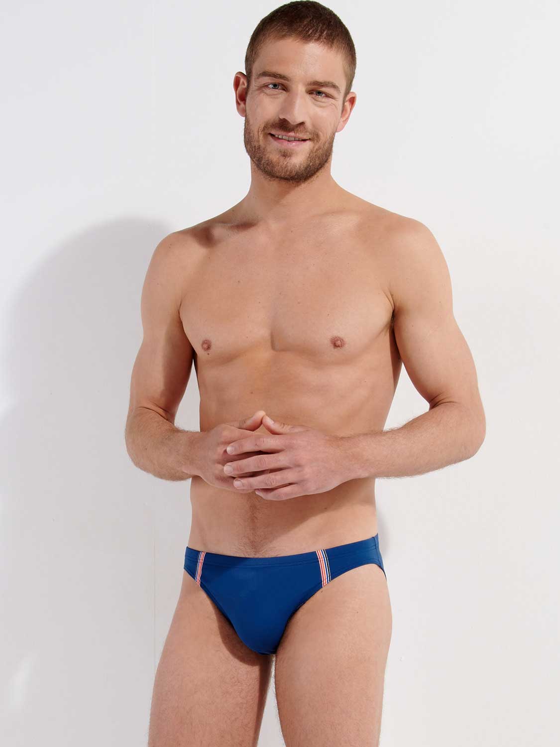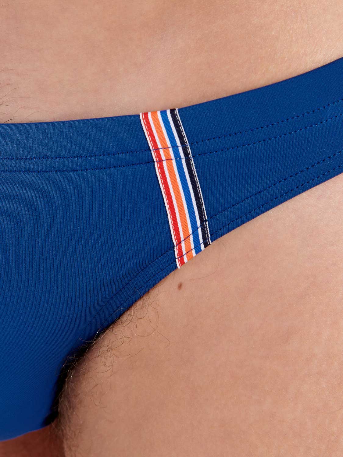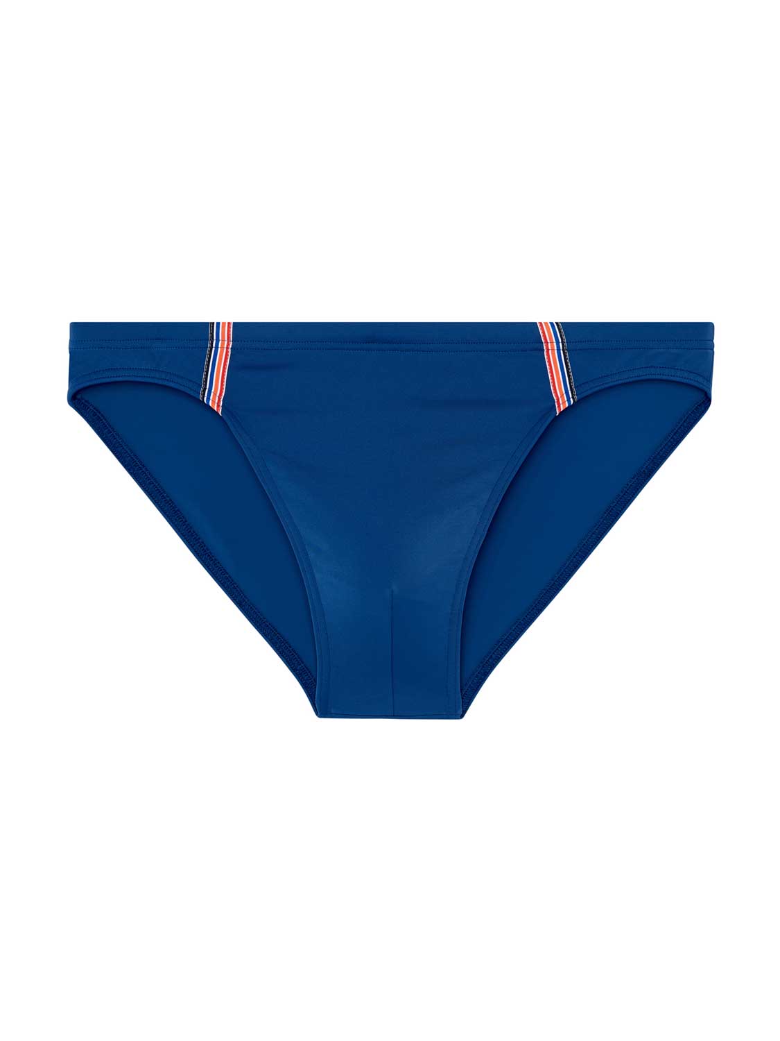 De Nautical Cup- Swim Micro Briefs verkrijgbaar in 3 verschillende unikleuren, marine blauw, oranje en khaki, met een stijlvolle verticale lijnen rondom de pouch voor een stijlvolle en sportieve look. De stof van de zwembroek is elastisch, sluit mooi aan op de huid en schijnt niet door. Het betreft hier een micro briefs model, waardoor je de zwembroek laag op de heupen draagt. Met het trekkoord aan de binnenzijde in de heupband breng je de zwembroek perfect op maat. Met deze sportieve zwembroek race je door het water.