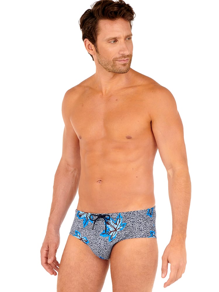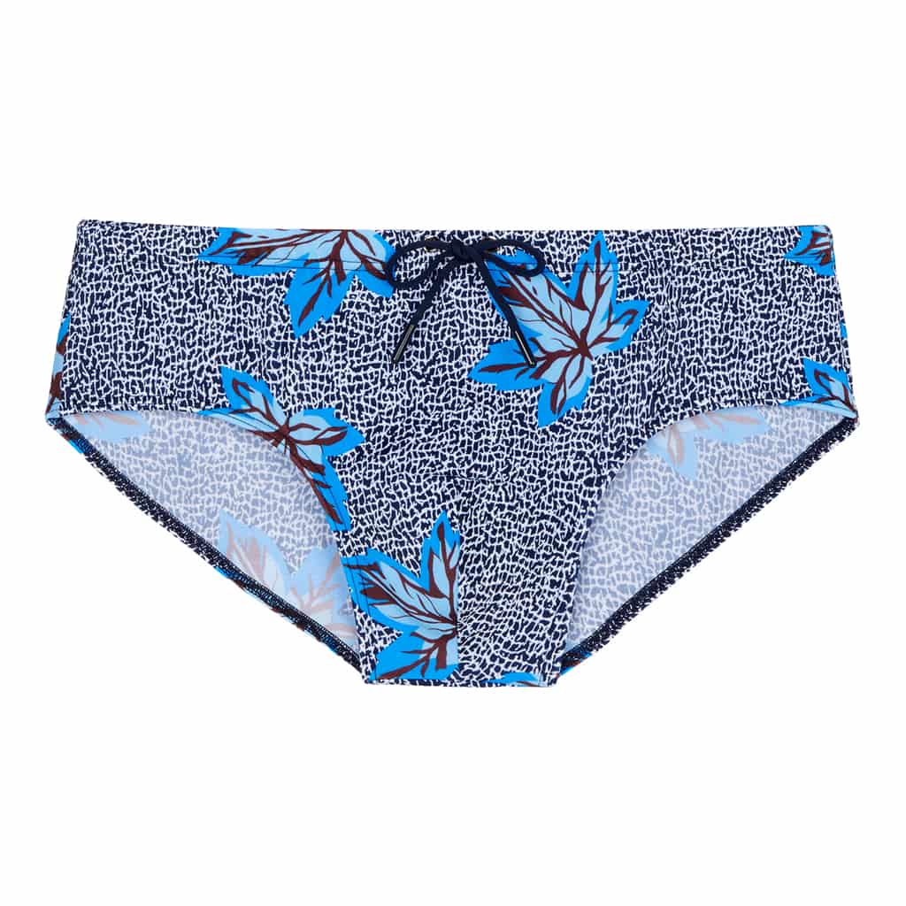 De Sekou Swim Mini Brief is uitgevoerd met een sierlijke leafprint op een marine blauwe achtergrond. De zwembroek heeft een trekkoord aan de buitenzijde verwerkt in de heupband waarmee je deze perfect op maat kunt brengen voor een comfortabele fit.