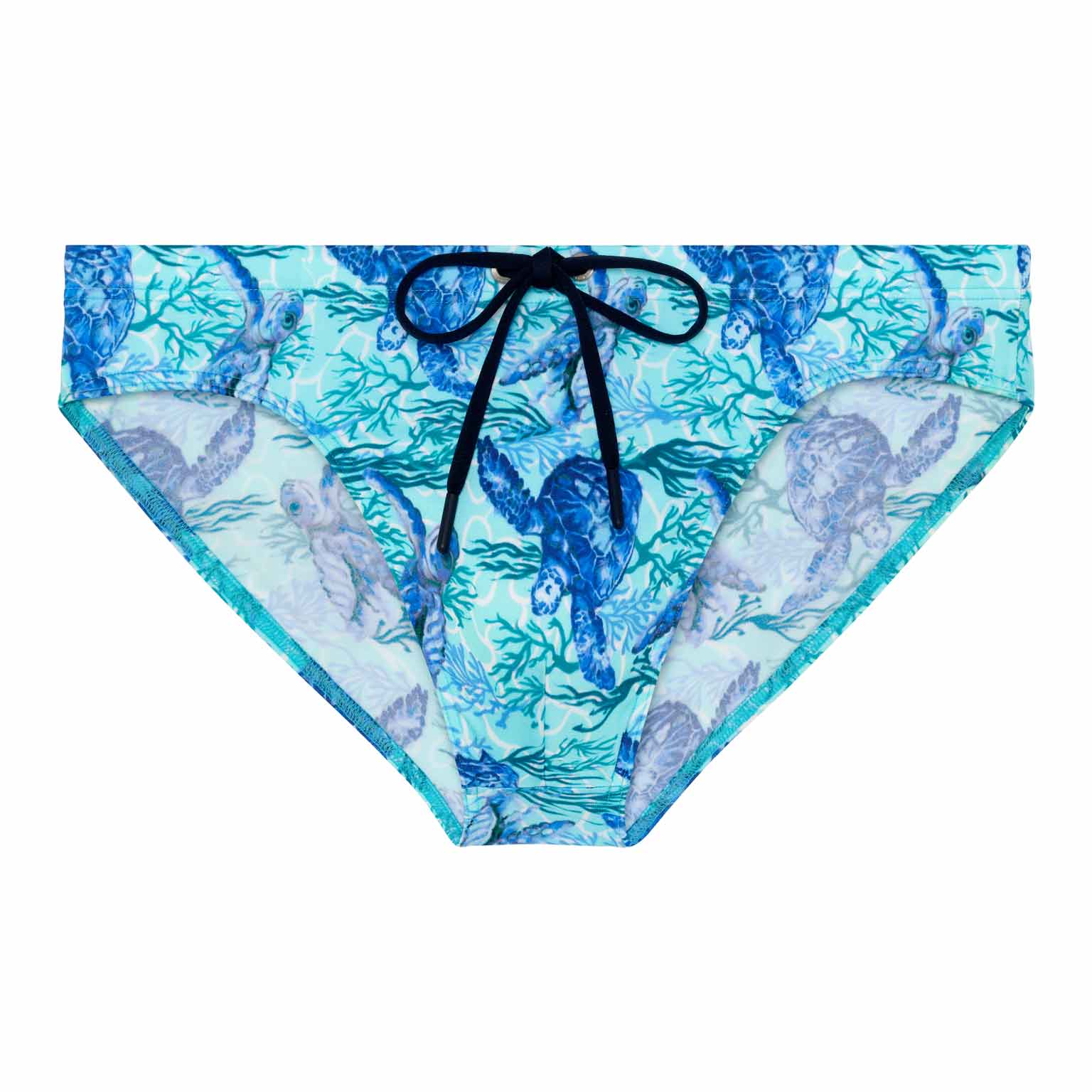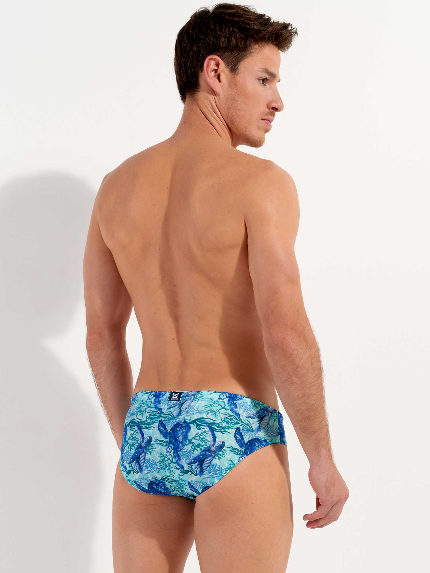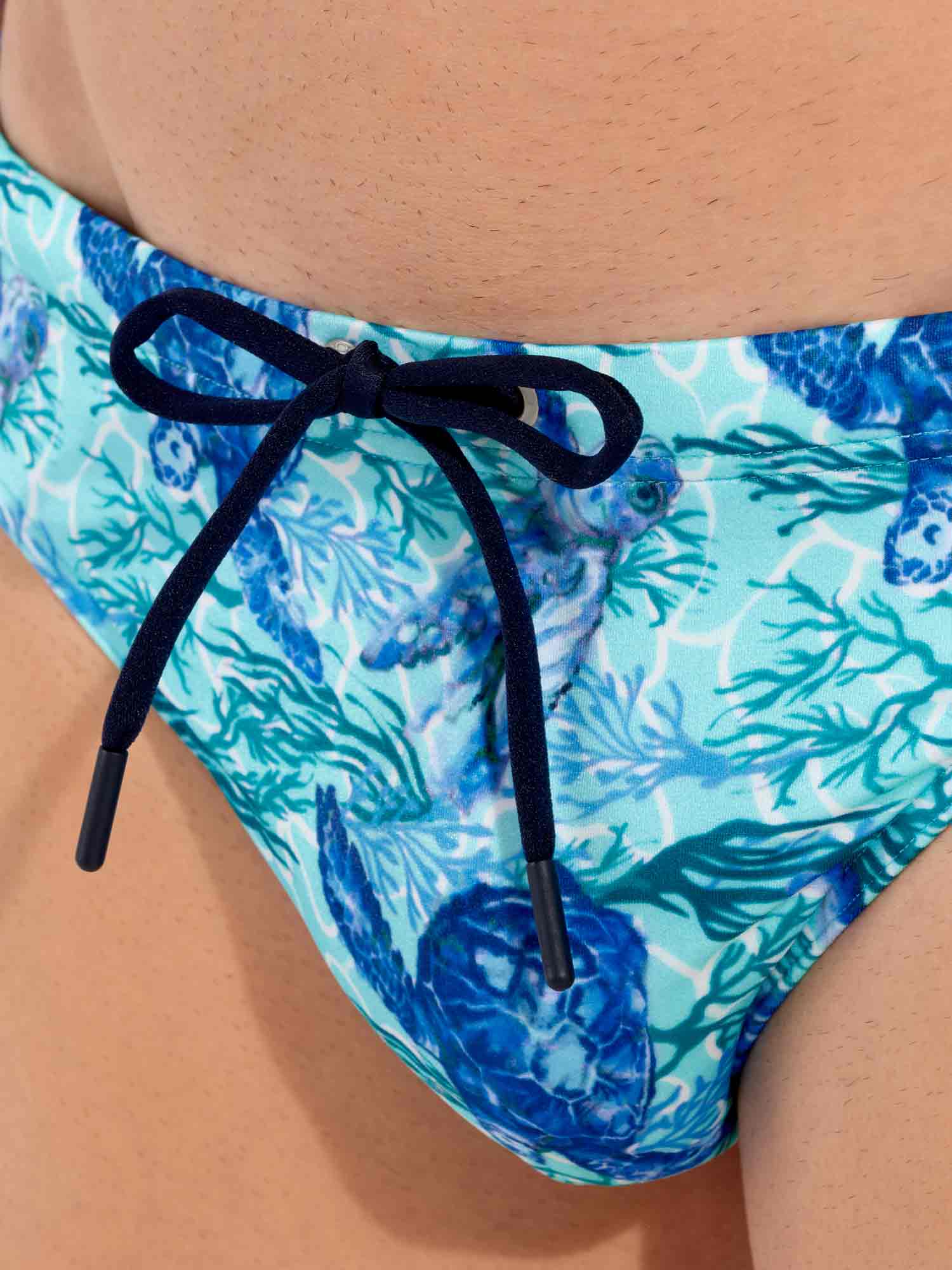 De Tartane - Swim Mini Briefs maken deel uit van de zomercollectie zwemkleding van HOM. Blauwe schildpadden op een turquoise achtergrond sieren dit waterachtige ontwerp dat doet denken aan de zeebodem rond de Caribische eilanden. De schildpad staat symbool voor wijsheid, moed en doorzettingsvermogen. De stof is elastisch, sluit mooi aan op de huid en is niet doorschijnend. Omdat dit mini briefs zijn, zitten ze hoger op de heupen. Het trekkoord in de tailleband zorgt ervoor dat je de zwembroek perfect kunt afstellen op jouw maat voor een stevige en comfortabele pasvorm.