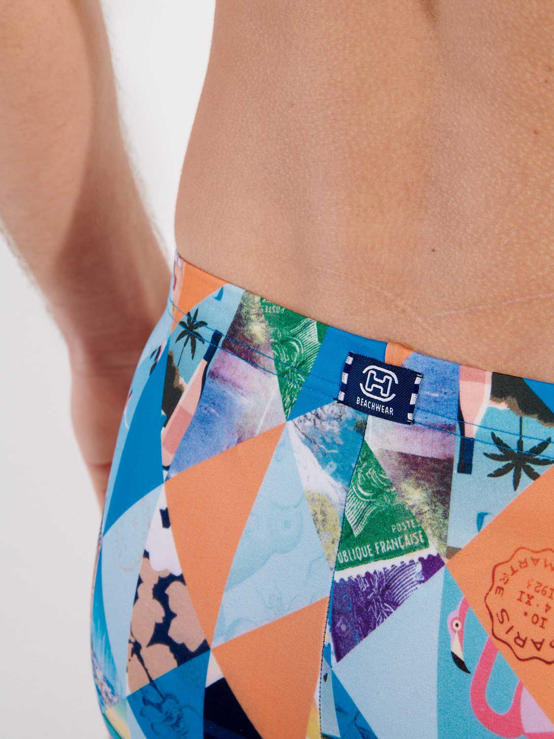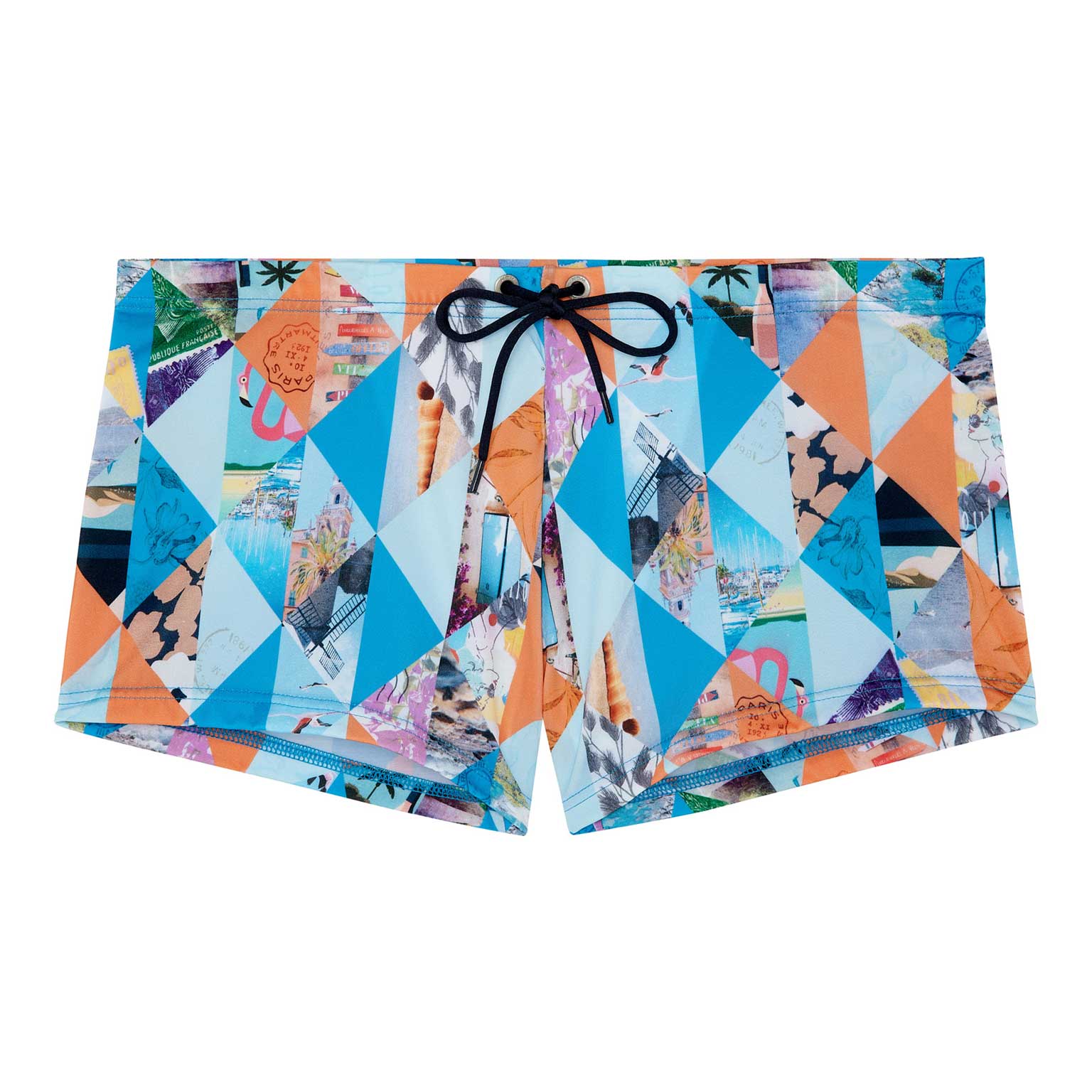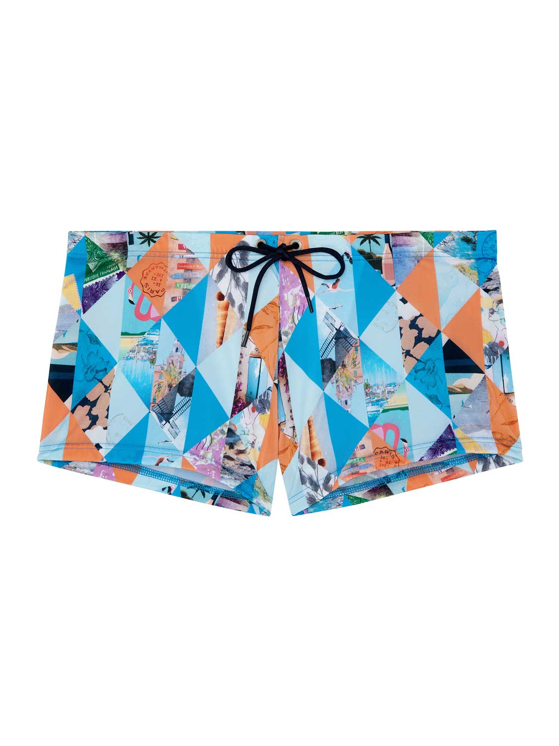 De Port Cros - Swim Short straalt een vakantiegevoel uit met zijn geometrische kleurrijke print met foto's van prachtige vakantieoorden langs de zee, met lange stranden. De stof is elastisch, sluit mooi aan op de huid en schijnt niet door. Met het trekkoord in de heupband breng je de zwemboxer perfect op maat. Een prachtig mode-item voor op het strand of in het zwembad.