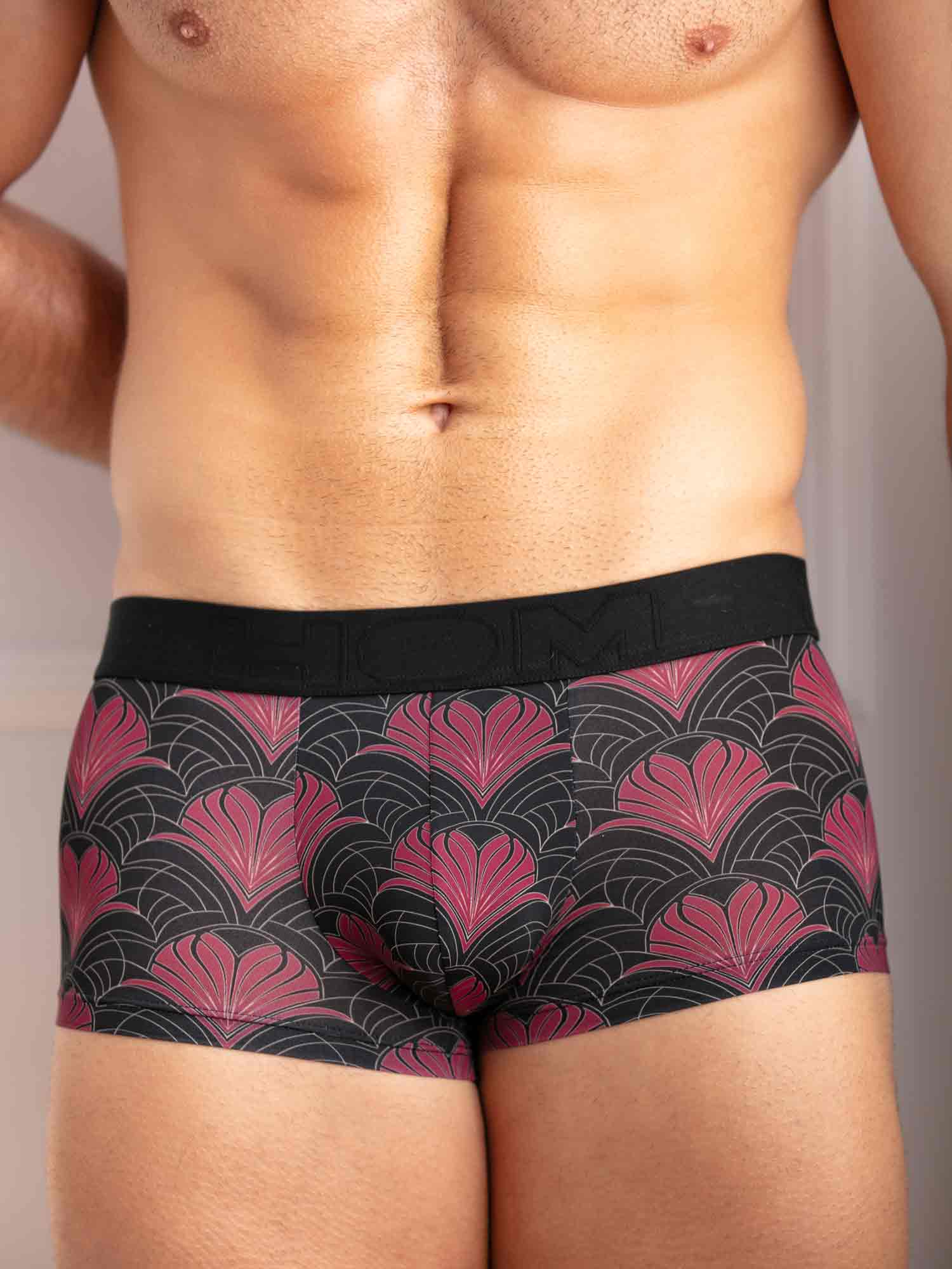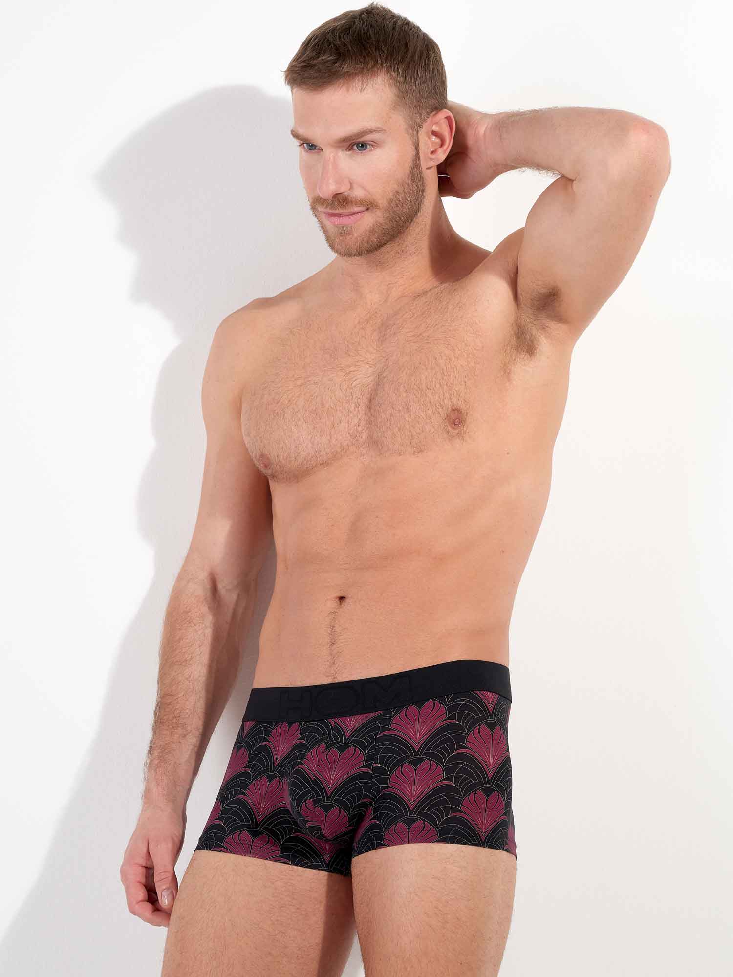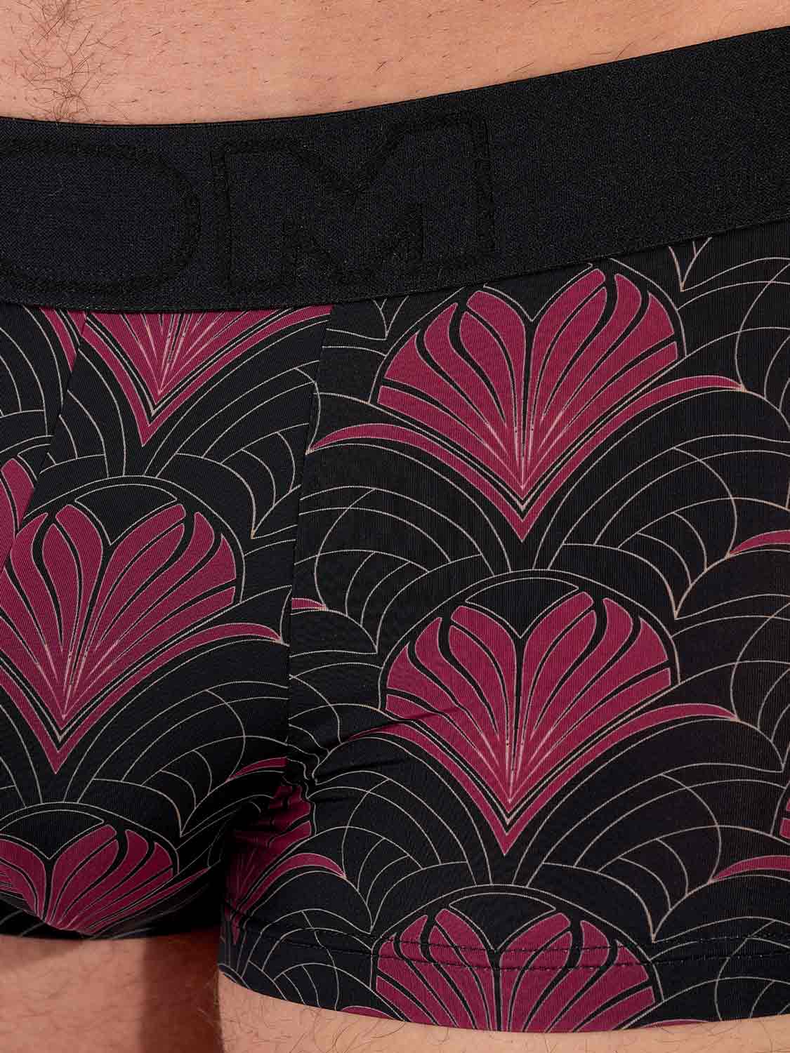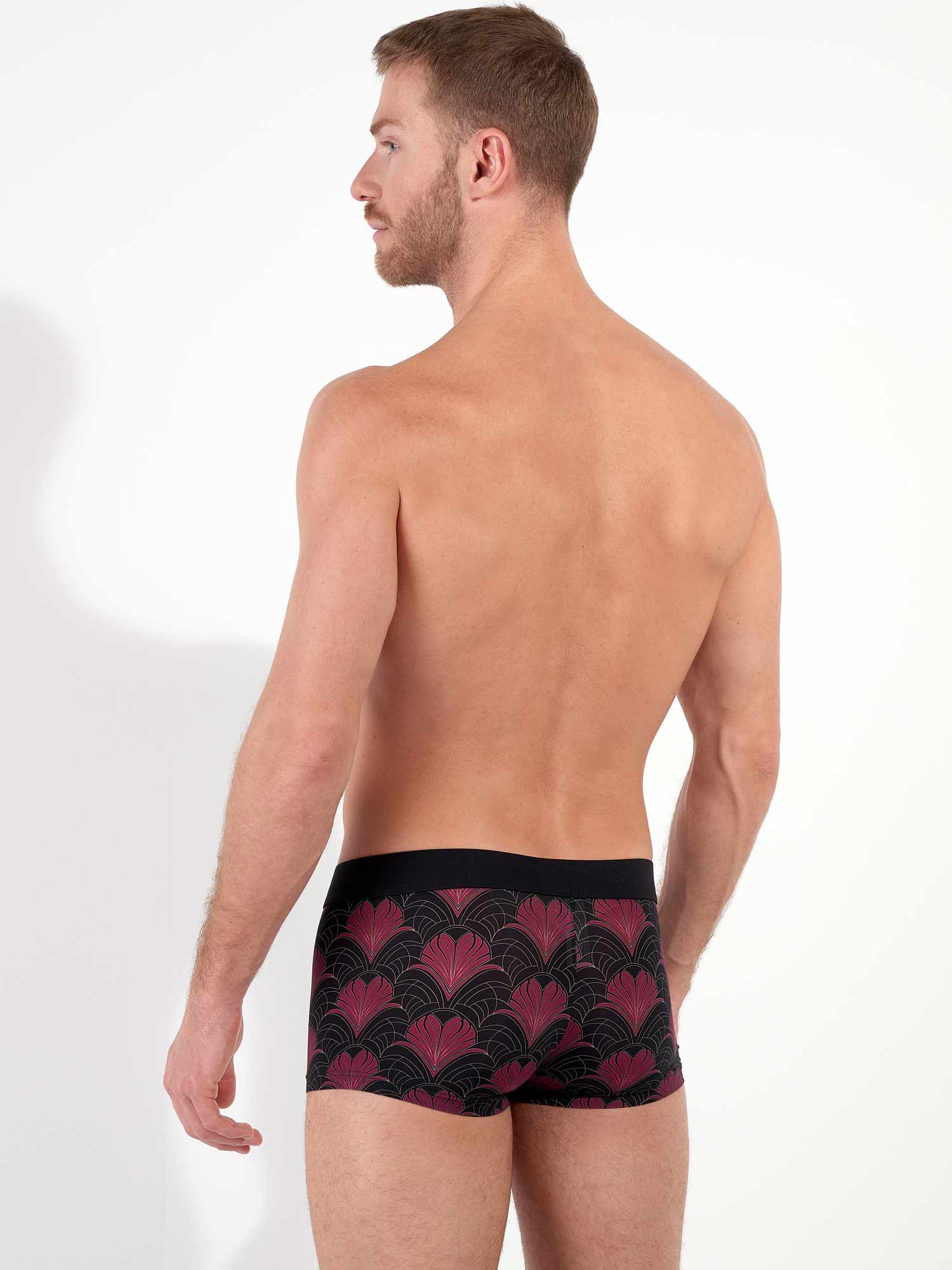 De Carlyle trunk brengt een eerbetoon aan de elegantie van het Art Deco-tijdperk. De diepzwarte basis wordt verrijkt met een luxueus patroon in bordeaux en goud, dat doet denken aan bloeiende veren of florale waaiers. De gladde microvezel voelt heerlijk aan tegen de huid, terwijl de naadloze tailleband zorgt voor een perfecte pasvorm zonder afdrukken. Een stijlvolle keuze voor wie graag verfijning combineert met sensualiteit. De trunk is te combineren met het bijpassende shirt tot een complete set.