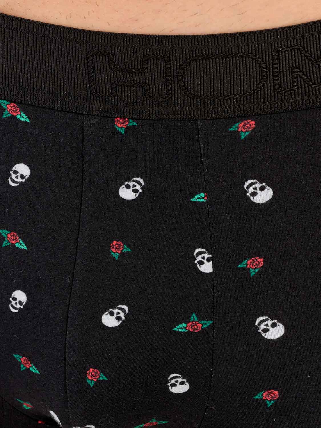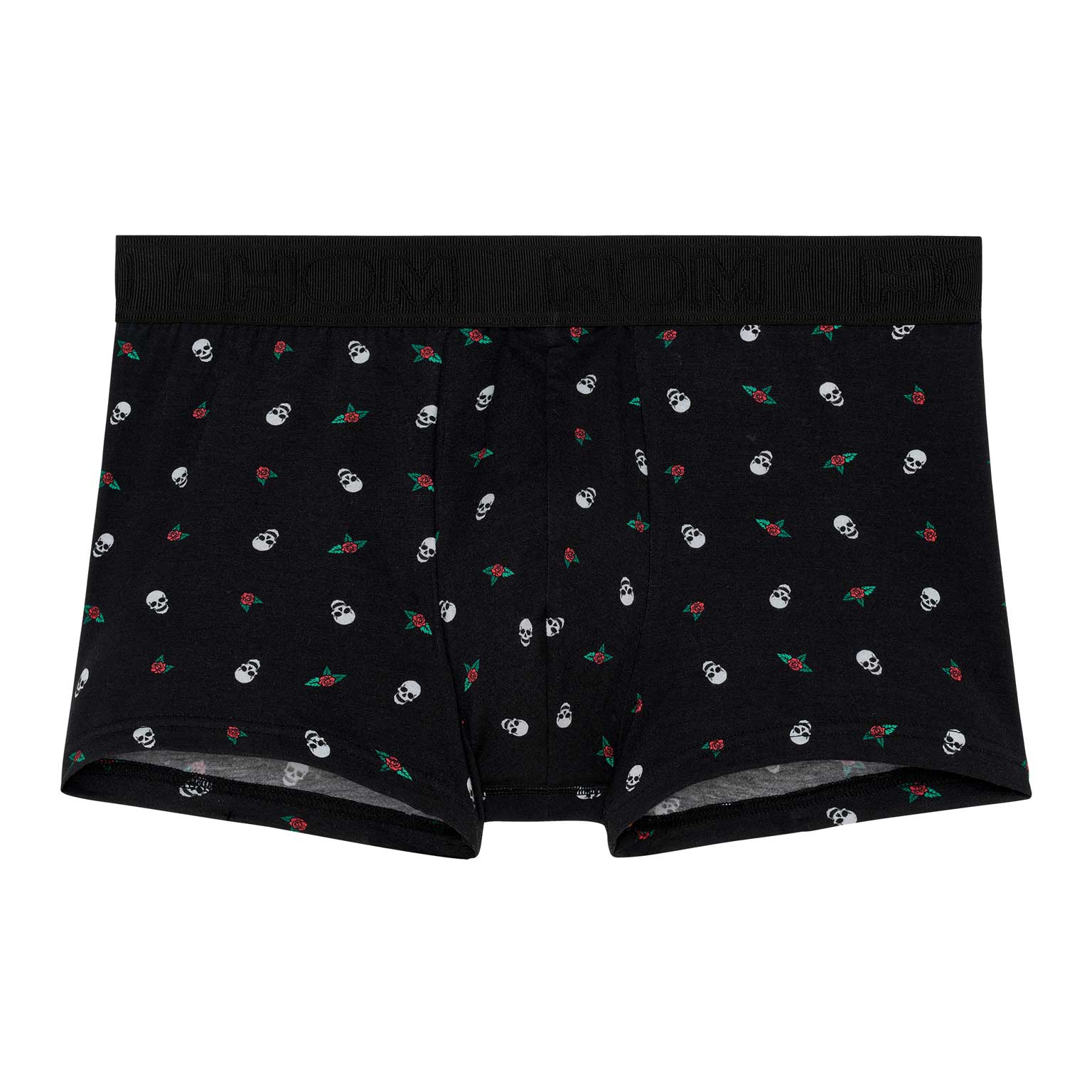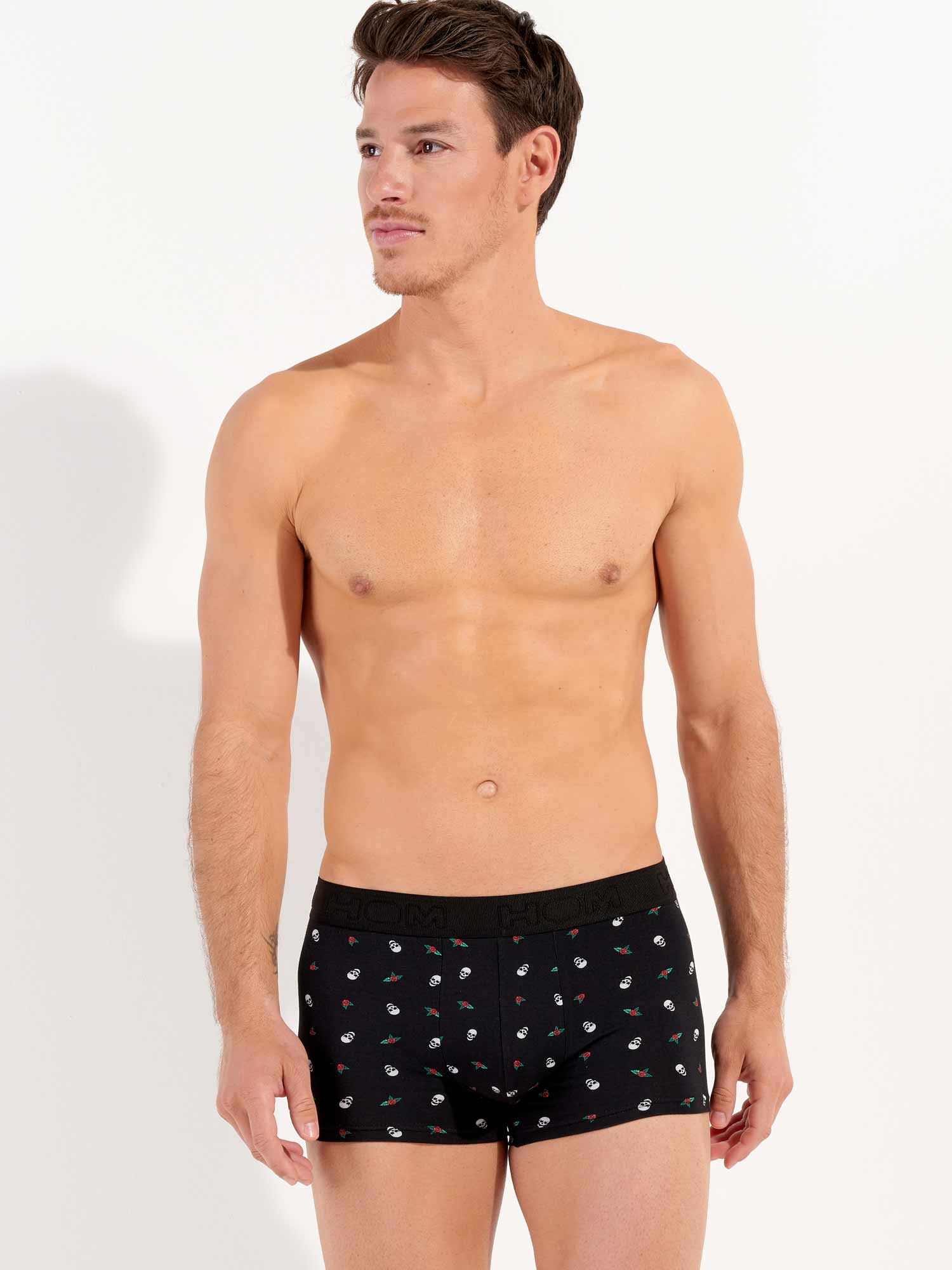 De Nevada - Trunk is gemaakt van hoogwaardig katoen-modal, waardoor deze zacht en comfortabel voelt op het lichaam. De Nevada heeft een print met een opvallend contrast van illustraties van schedels en rode rozen. De elastische heupband heeft een rib met het HOM-Logo geborduurd in ton sur ton. Het trunk model ligt lager op de heupen dan een reguliere boxer voor een modieuze look en heeft korte pijpen.