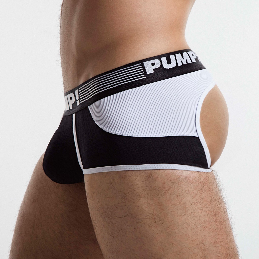 De Acces Trunk van PUMP! is een trunk met een backless design. De Trunk is speels, gewaagd en geeft je alle vrijheid die je nodig hebt. De Black Acces Trunk is gemaakt van een comfortabele microfiber met een pouch gemaakt van mesh. De achterzijde heeft een stoer rib effect. De Black Acces Trunk is uitgevoerd in de kleuren zwart en wit.