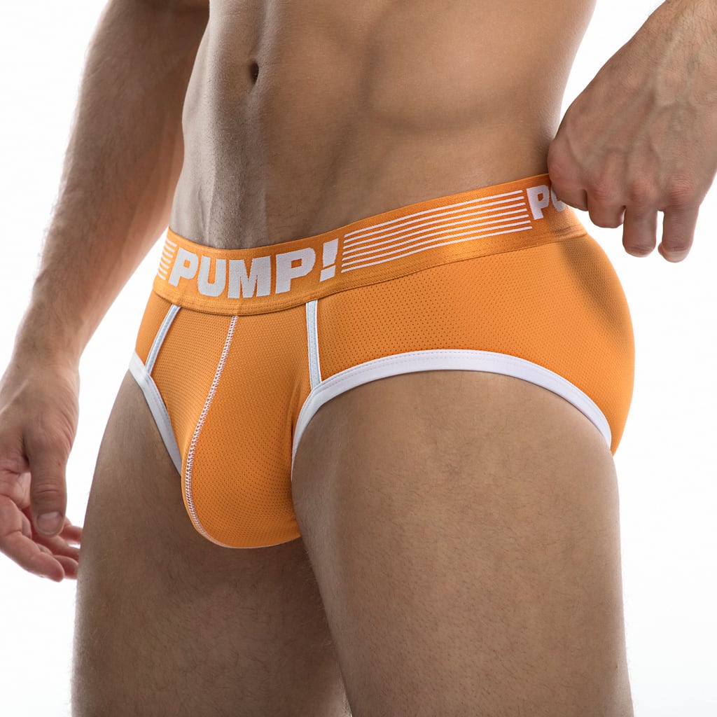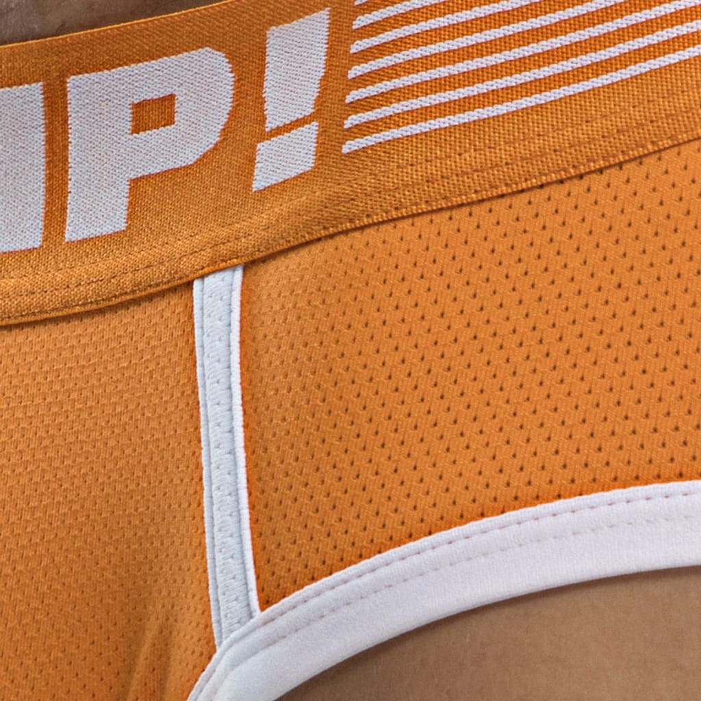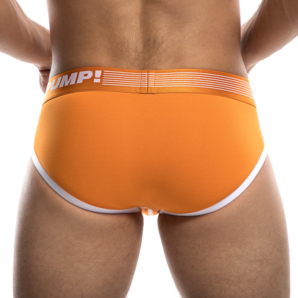 De Creamsicle Brief combineert een goede pasvorm met een vintage design voor een sexy look die nooit uit de mode raakt. Deze heren slip van PUMP! is ontworpen voor comfort en heeft een opvallende PUMP! tailleband van 4 cm hoog. De slip is gemaakt van een zachte stof en heeft een cup gemaakt van een micro-mesh waardoor deze beter ademt. Met de Creamsicle kun je niet mis gaan. Uitgevoerd in oranje met witte contraststiksels en biesjes.