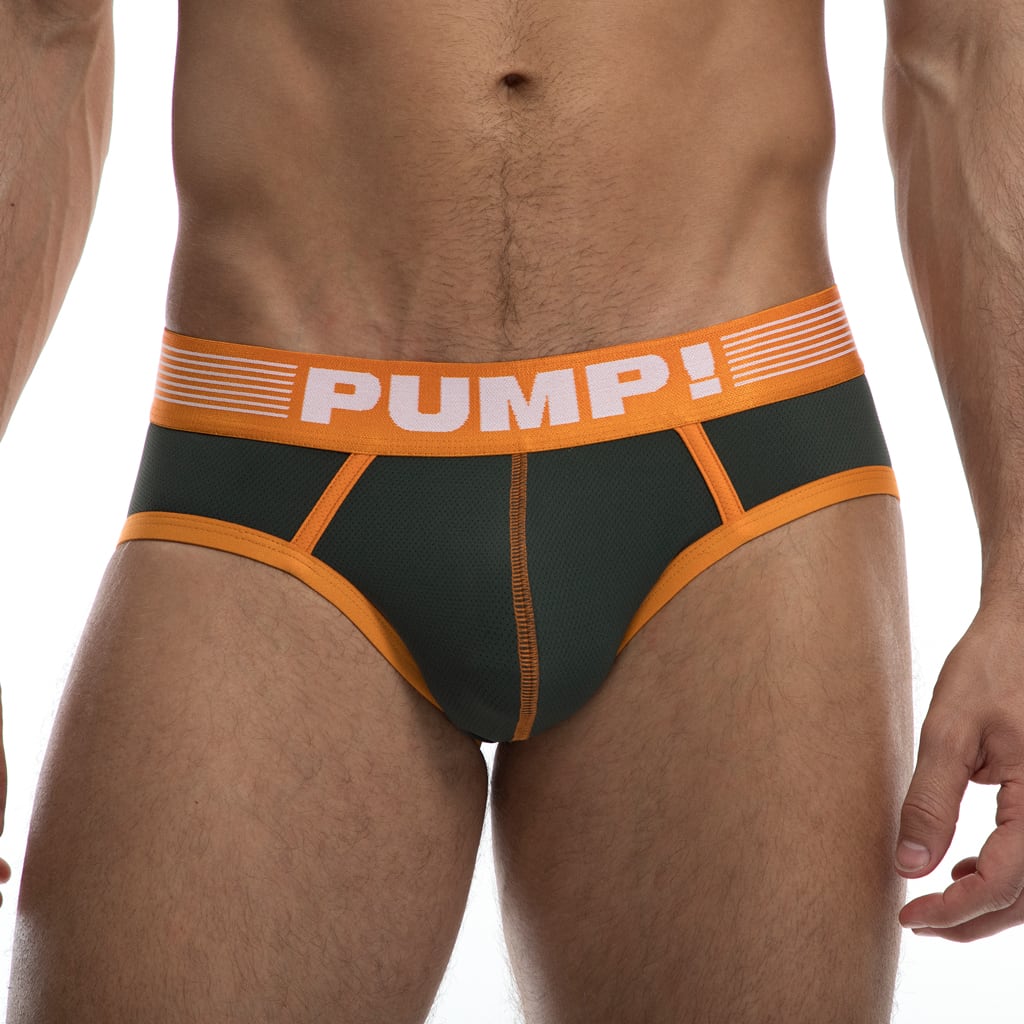 De Squad Brief combineert een goede pasvorm met een vintage design voor een sexy look, die nooit uit de mode raakt. Deze heren slip van PUMP! is ontworpen voor comfort en heeft een opvallende PUMP! tailleband van 4 cm hoog. De slip is volledig gemaakt van een zacht fijnmazige microfiber mesh , waardoor de slip beter ademt. Met de Squad Brief kun je niet mis gaan. Uitgevoerd in groen met oranje stiksels en biesjes.