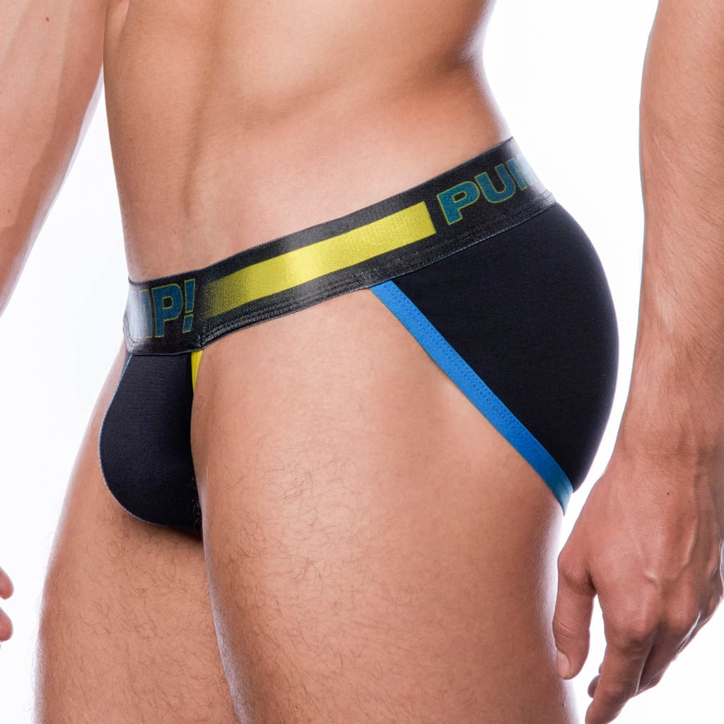 De PLAY - SideCut Brief is een comfortabele kleurrijke tanga slip van PUMP! Uitgevoerd in het zwart met een brede tailleband van 4,5cm voor een comfortabele fit, zodat de brief comfortabel blijft zitten. De achterzijde van de tanga slip is gemaakt van een zachte rekbare microfiber gemaakt van nylon en geeft de benodigde support en ondersteuning aan de billen. De cup is gemaakt van een micro mesh tevens van nylon en afgewerkt met blauwe contrast stiksels en belijning in de kleur geel. Met deze tanga slip heb je volledige bewegingsvrijheid en kun je dus ongeremd bewegen! Daarnaast drijft de Sidecut Brief ook nog eens perfect vocht af doordat deze gemaakt is van microfiber, ideaal voor het sporten! Dus laat het spel beginnen met de PLAY SideCut Brief!