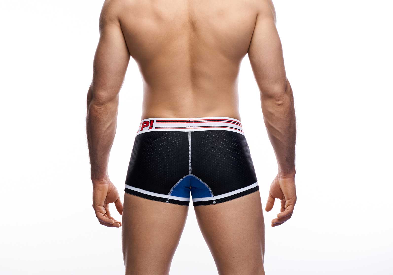 De Circuit - Touchdown met een stoere zwarte microfiber mesh body en een rode cup gemaakt van katoen voor een sportieve uitstraling. De touchdown boxer heeft steekzaken aan de linker- en rechterzijde. De stoere tailleband met race-strepen brengt je in overdrive. Als dat niet genoeg is om mensen te laten stoppen!