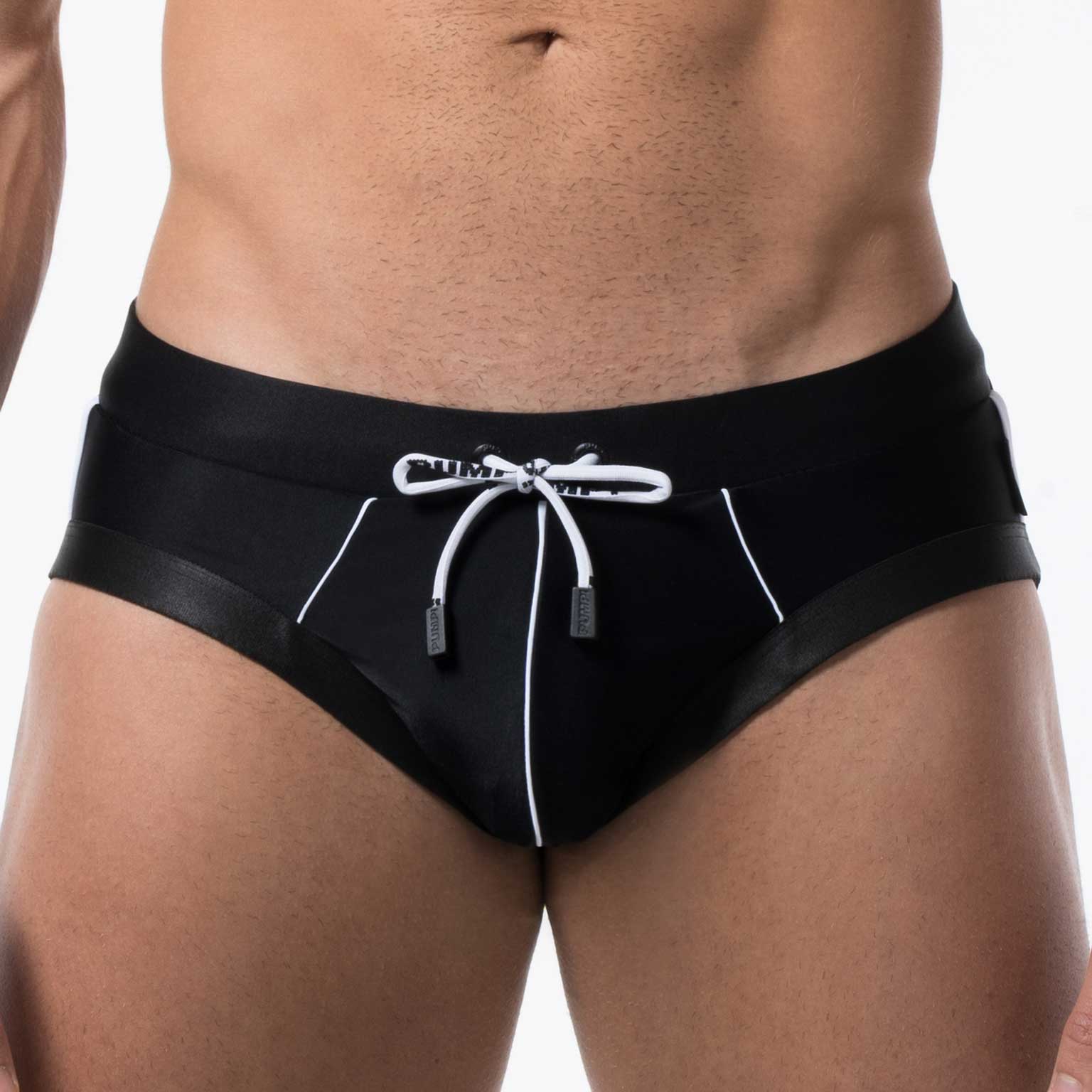 Met deze stoere zwarte opvallende Water Briefs van PUMP! kun je niet mis gaan. De brede tailleband van deze laag uitgesneden zwemslip geeft je optimaal comfort. Het meerlaagse beenelastiek biedt de ultieme ondersteuning en accentueert de billen. De stof is gemaakt van een speciale zachte nylon microvezelstof wat UPF 50+ bescherming biedt tegen de zon. In de heupband zit een trekkoord voor een verstevigde fit.