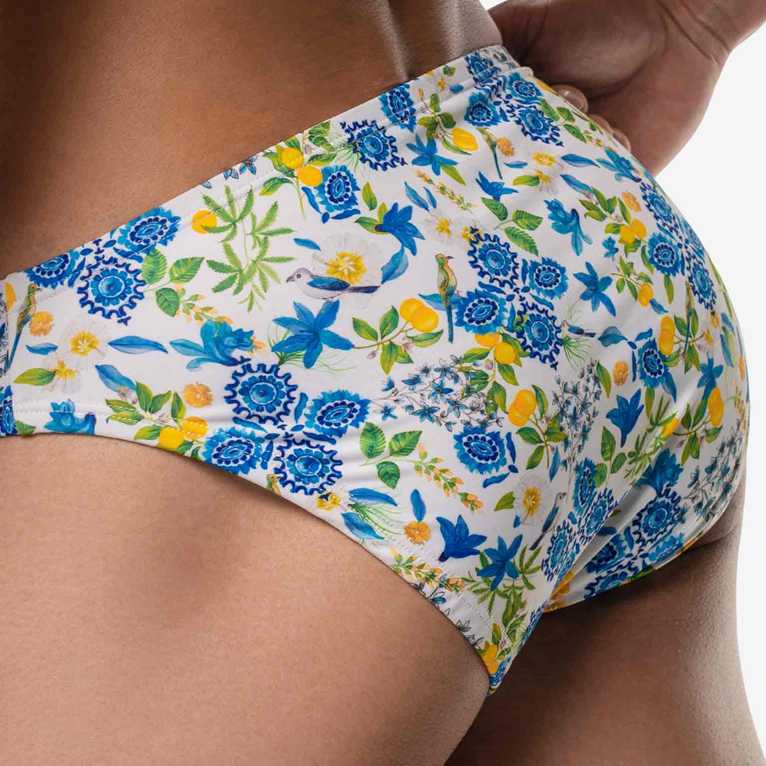De Limoncello Water Cheeky brengt de zomerse sfeer van de Middellandse Zee tot leven met een verfrissende print van citroenen en azulejo-details. Deze zwemslip is ontworpen voor comfort en stijl, met een ultra-zachte microvezelstof, een strak laag uitgesneden front en een uitgesneden achterkant die net genoeg laat zien. Het materiaal is sneldrogend, kleurvast en biedt UPF 50+ zonbescherming. Gemaakt van duurzaam gerecycled materiaal en bedrukt met een milieuvriendelijke techniek, is dit een opvallend item voor elke winterse zonvakantie.