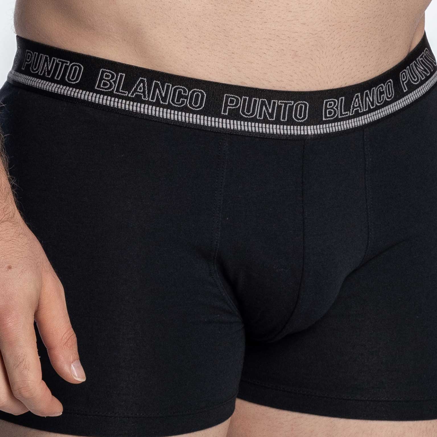 De Innsbrucks een multi-pack met 2 boxers gemaakt van biologisch katoen. Biologisch katoen komt van een katoenveld met planten die niet genetisch gemodificeerd zijn en waar geen pesticiden worden gebruikt. De boxers hebben een klassiek design, waarvan 1 in effen zwart en de ander met een print in zwart/grijs. De comfortabele elastische heupband is uitgeveord met het Punto Blanco logo rondom.