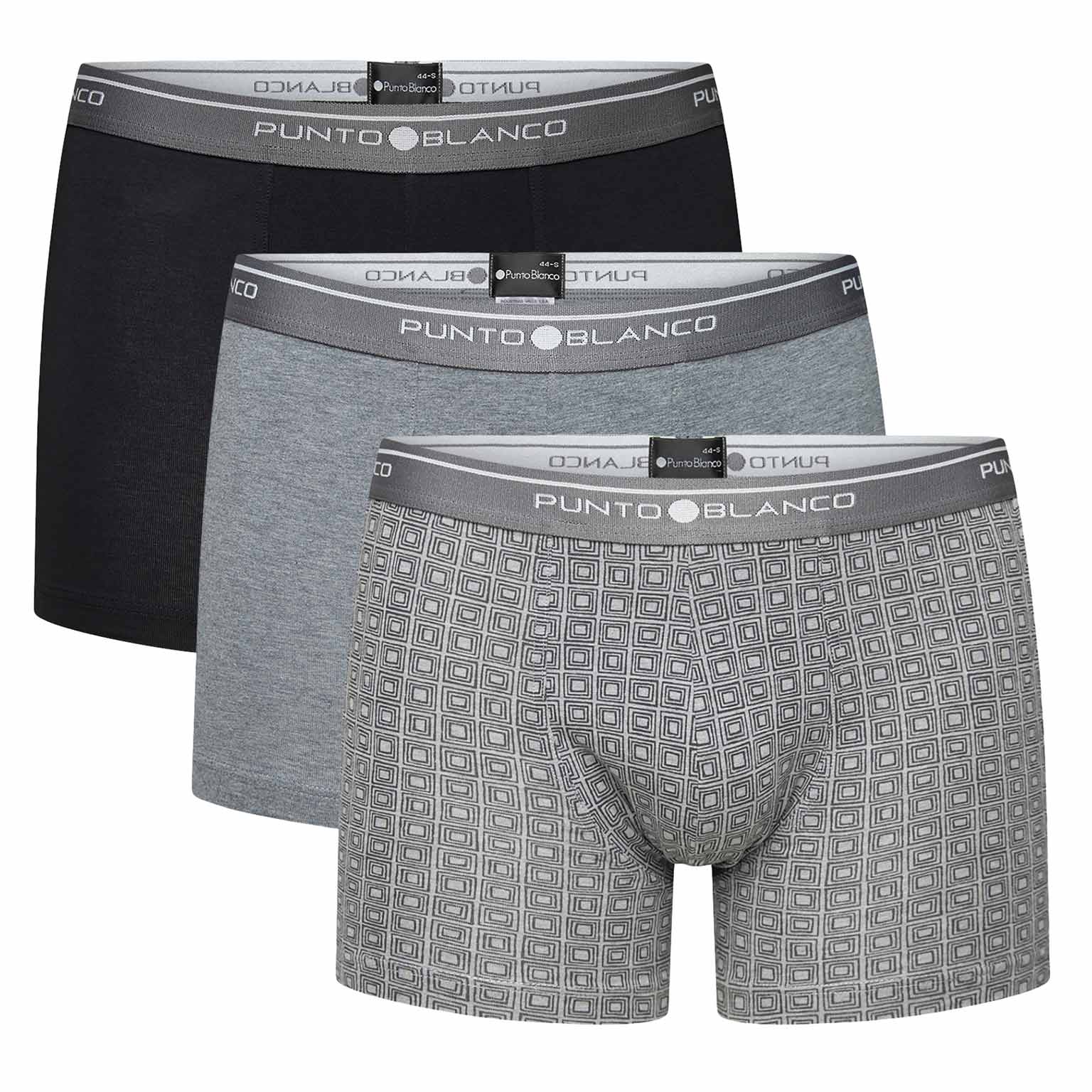 De Basix serie staat voor eenvoud; goed ondergoed en voordelig geprijsd. De Basix zit al jaren in het assortiment van Punto Blanco en heeft zichzelf dan ook al overtuigend bewezen. Met de Basix Boxer Briefs koop je een goede degelijke boxer, geschikt voor alledaags gebruik. De Basix boxers zijn gemaakt van 93/7 stretch katoen voor een comfortabele fit die langer behouden blijft. Dit voordeelpack beschikt over 3 boxers in diverse kleurcombinaties met een contrasterende elastische heupband met daarop het Punto Blanco logo rondom. Het logo is aan de voorzijde niet gecentreerd.