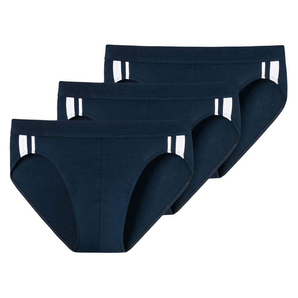 3 SCHIESSER Rio Slips voor de man uit de bekende 95/5 serie, in een multi-pack. De heren slips zijn verkrijgbaar in diverse kleuren, met contrasterende lijnen aan de zijkant. Een zachte tailleband zorgt voor het beste draagcomfort. De Rio slip draag je op de heupen en is hoog uitgesneden. Gemaakt van biologisch katoen in een comfortabele elastische jersey kwaliteit.