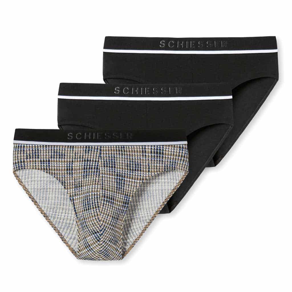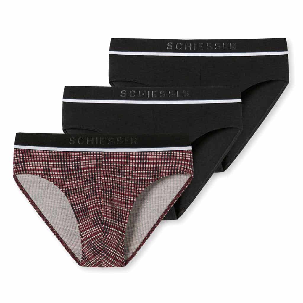 3 SCHIESSER Rio Slips voor de man uit de bekende 95/5 serie, in een multi-pack. De heren slips zijn verkrijgbaar in diverse kleuren, met contrasterende lijnen aan de zijkant. Een zachte tailleband zorgt voor het beste draagcomfort. De Rio slip draag je op de heupen en is hoog uitgesneden. Gemaakt van biologisch katoen in een comfortabele elastische jersey kwaliteit.