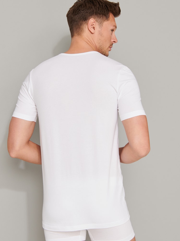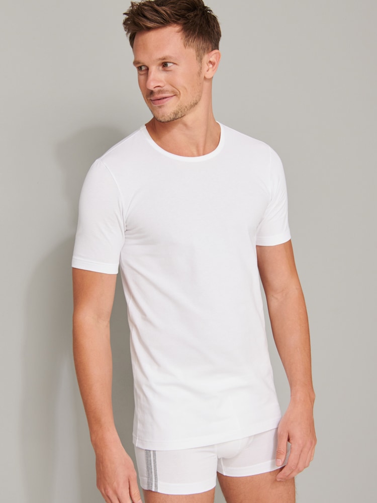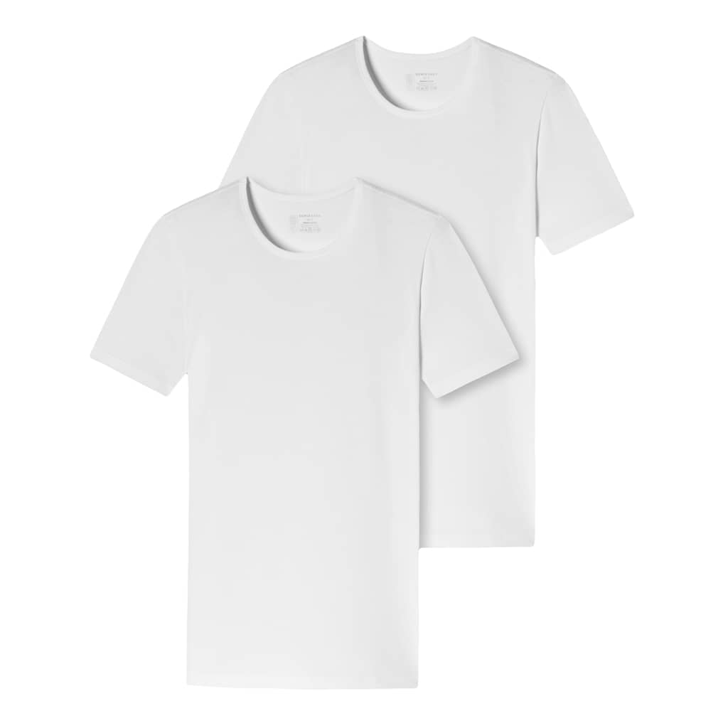 2 T-shirts met een ronde neck in een voordelige duo-pack. Deze shirts van Schiesser behoren tot de 95-5 serie, gemaakt van biologisch katoen. De shirts zijn gebreid in een single jersey en door de toevoeging van elastan behouden de shirts uitstekend hun pasvorm, ook tijdens het wassen op 60 graden. Kortom, 2 shirts met de kwaliteit die je van Schiesser mag verwachten.