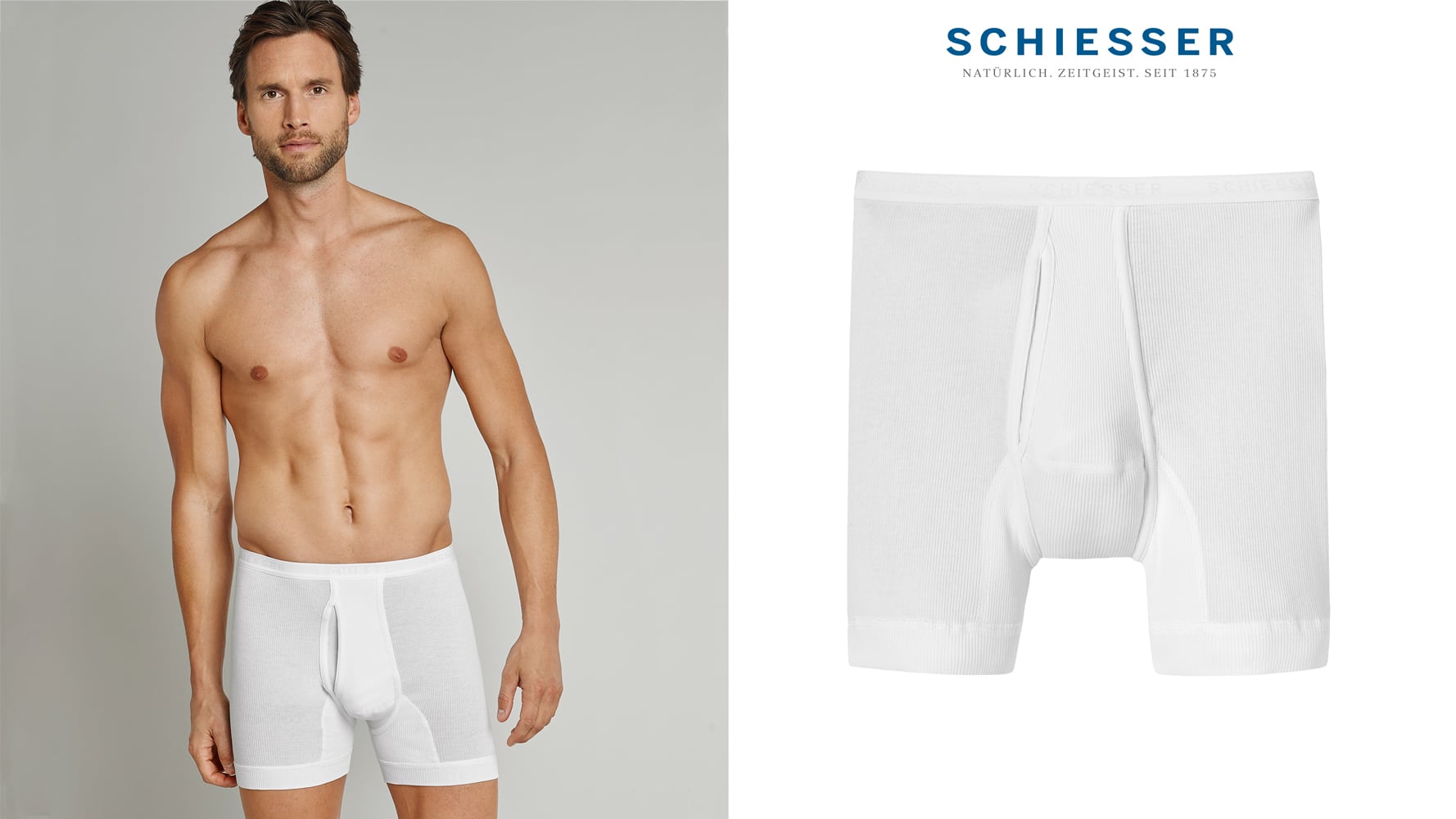 Heren ondergoed met een dubbele rib! Deze heren short uit de Doppelripp collectie is een Schiesser "Original Classic". Dit boxershort heeft een klassieke snit en is uitgevoerd met een gulp. De boxer draag je op de heupen en geeft bijzonder fijn draagcomfort door de optimale pasvorm. Het 100% tweedradige Mako-katoen voelt bovendien aangenaam zacht aan op de huid en doordat deze van 100% katoen is gemaakt kun je het boxershort zelfs op een temperatuur van 95 graden wassen zonder dat deze zijn pasvorm verliest. Een vormvaste, sterke heren boxershort met de kwaliteit waar SCHIESSER bekend om staat!