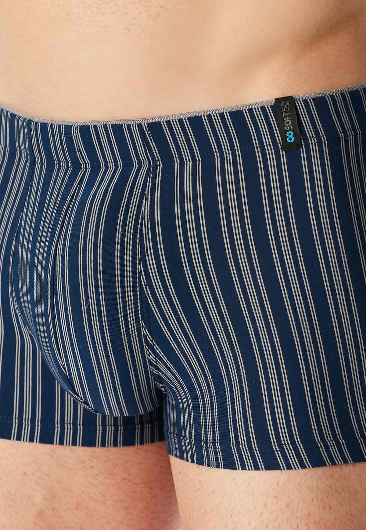Deze gestreepte boxeshort voor heren komt uit de Long Life Soft-serie van Schiesser en biedt optimaal comfort voor elke dag. De combinatie van modal en polyester zorgt voor een duurzame afwerking met minder pilling, terwijl de stofmix een perfecte pasvorm garandeert en heerlijk zacht aanvoelt. Het gladde oppervlak voelt aangenaam op de huid en blijft mooi, zelfs na vele wasbeurten. De binnenband vormt een stijlvol detail. Voor mannen die waarde hechten aan kwaliteit, duurzaamheid en klassiek design.