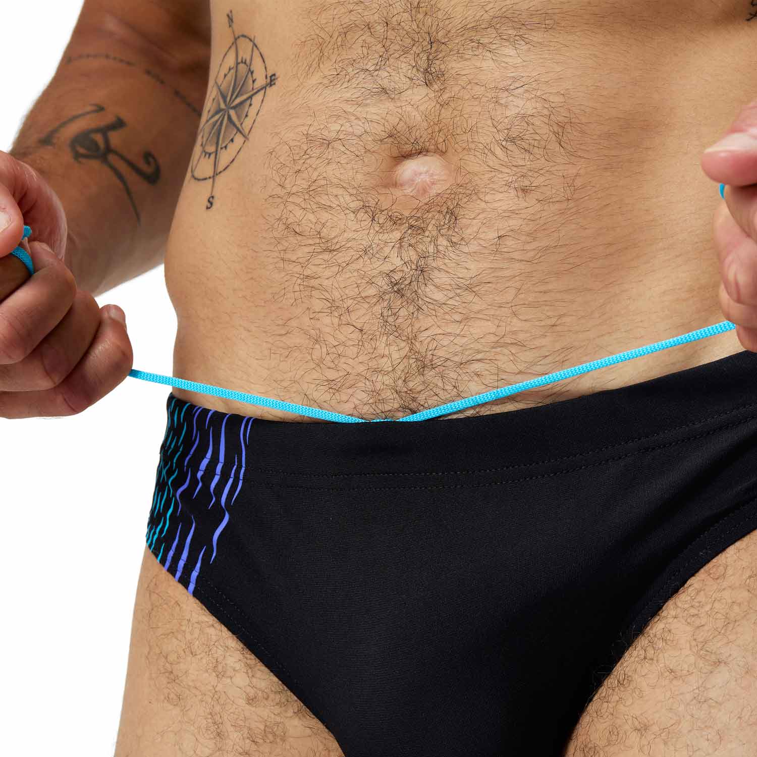 Eco+ 7cm Swimbrief van Speedo, perfect voor je training en uitgevoerd met een geometrische print. De zwemslip is gemaakt van Eco Endurance+, wat chloor afstotend is, snel droogt en vele malen langer mee gaat dan reguliere zwemkleding. Met het trekkoordje in de taille aan de binnenzijde van de zwembroek kun je deze perfect op maat brengen. Eco Endurance+ is gemaakt van gerecycled materiaal.