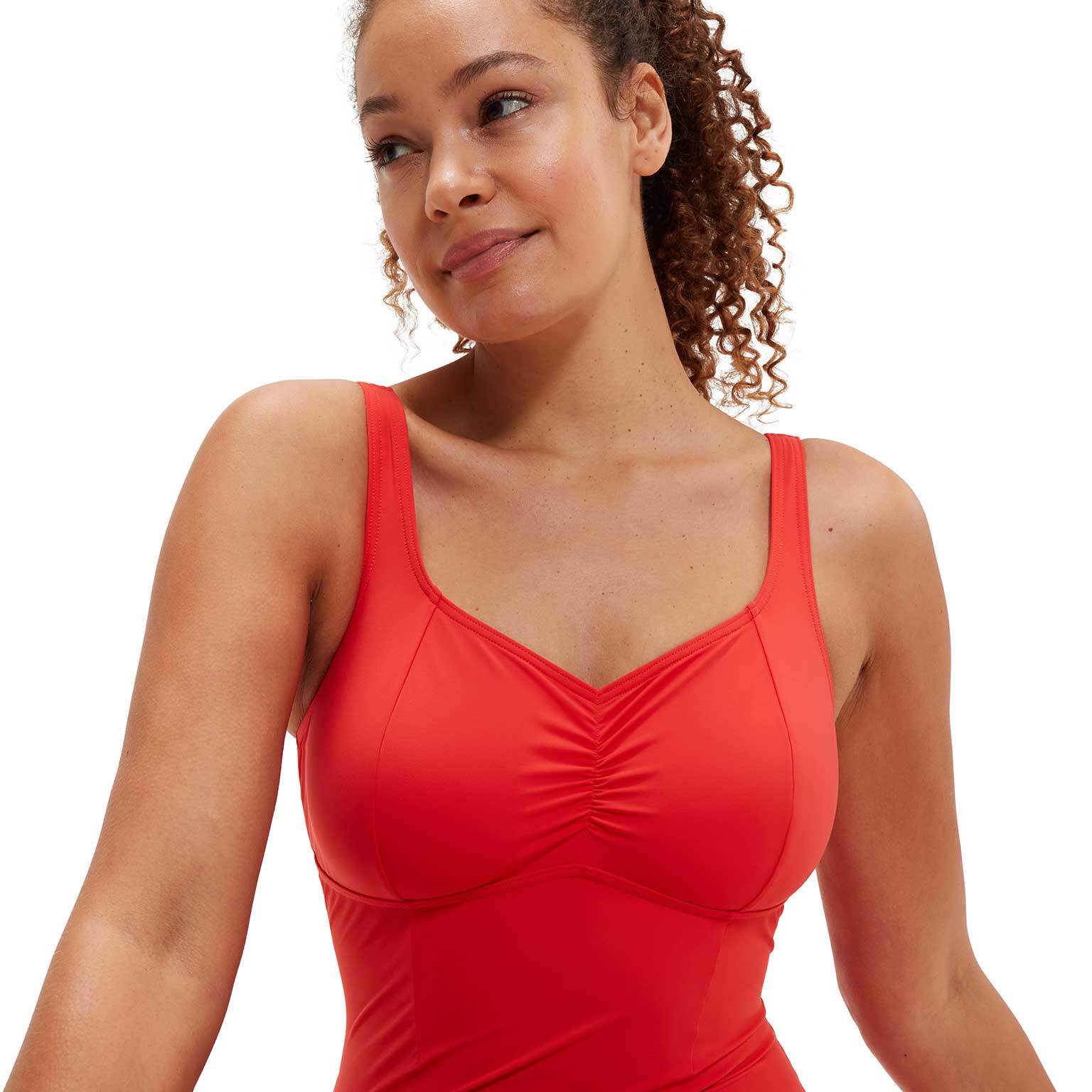 De Aquanite is een sculpture badpak uit de Shaping collectie van Speedo met een tijdloos en elegant design. De sculpture stof sluit perfect aan op het lichaam en accentueert de vrouwelijke rondingen voor een mooi gestroomlijnd figuur, zonder in te leveren op draagcomfort. Het badpak biedt een medium borstondersteuning verweven in de stof en heeft een all-over shaping effect. De verstelbare schouderbandjes zorgen ervoor dat je het badpak perfect op maat kunt brengen. Door de zachte V-hals is dit badpak uitermate geschikt voor de dame die boven iets breder is of een grotere cup nodig heeft. De sculpture stof gaat tot 2x langer mee dan standaard badkleding wanneer je in chloor zwemt, waardoor je langer van je badpak kunt genieten.