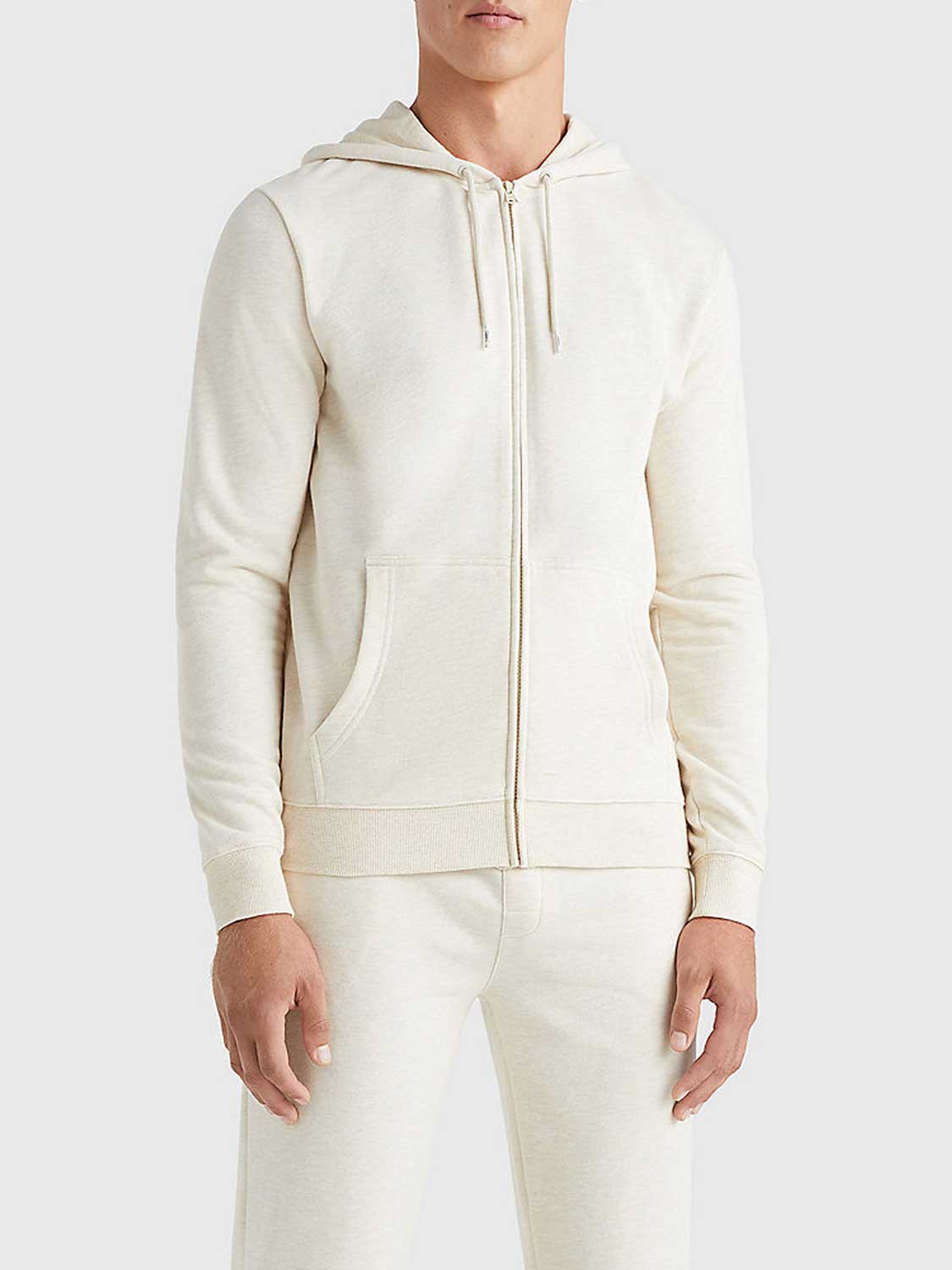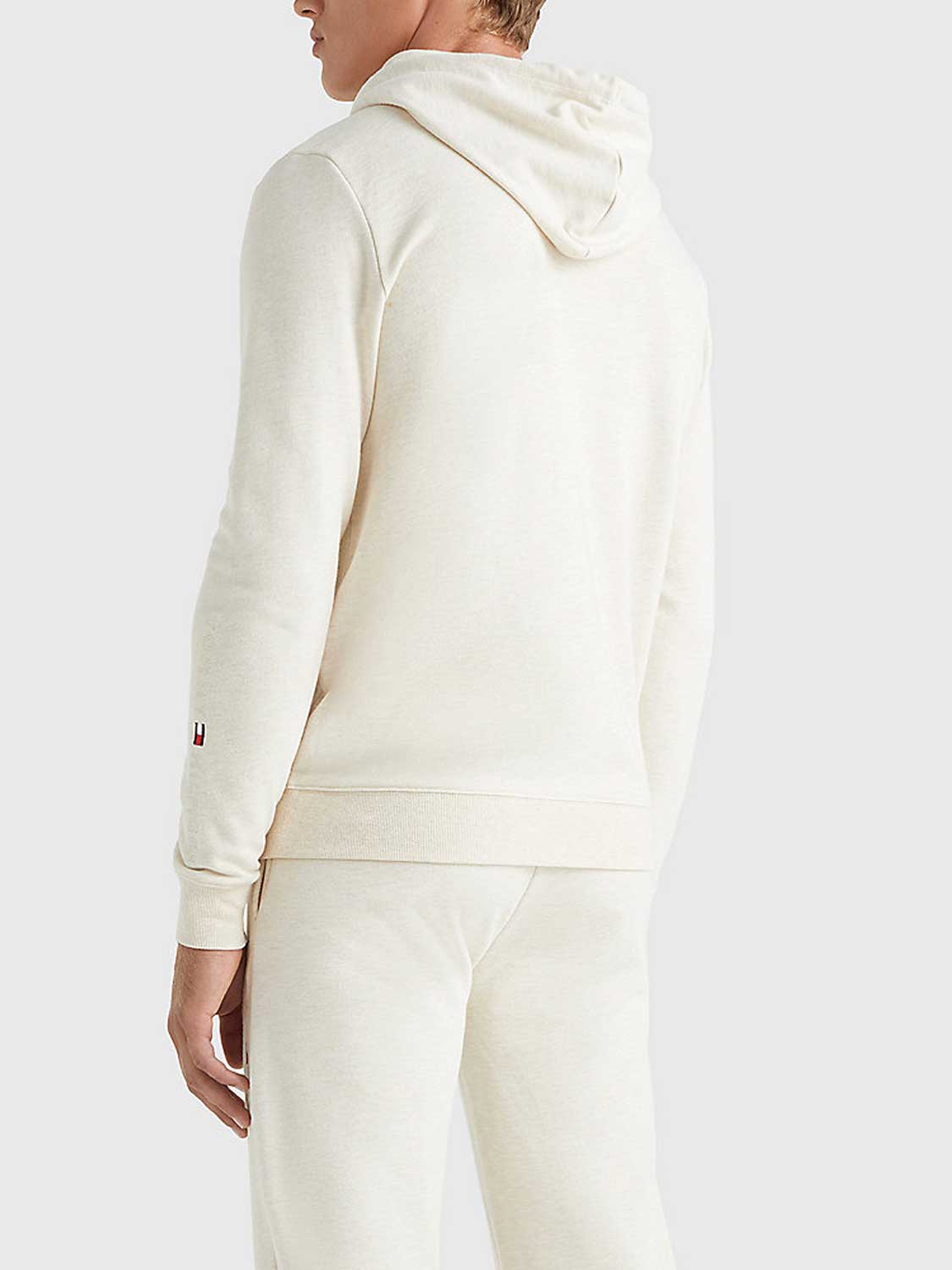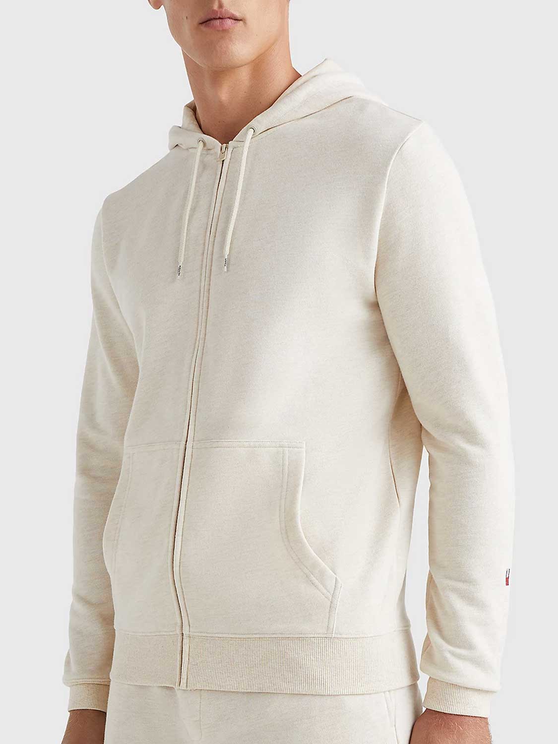 Prachtige Lounge Hoodie van Tommy Hilfiger gemaakt van een zachte biologische katoen mix. De hoodie beschikt over een capuchon met trekkoord en een ritssluiting met buidelzakken aan de linker en rechterzijde van de rits. De Hoodie heeft signature tape in de nek. De Hoodie is uitgevoerd in een lichter haver kleur.