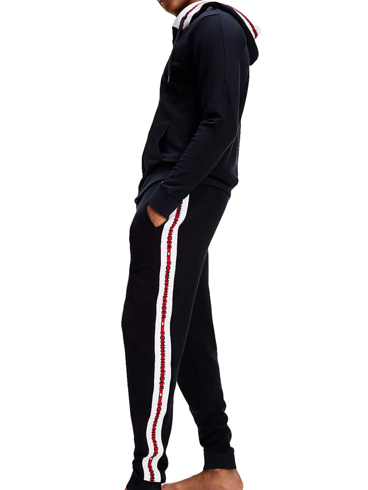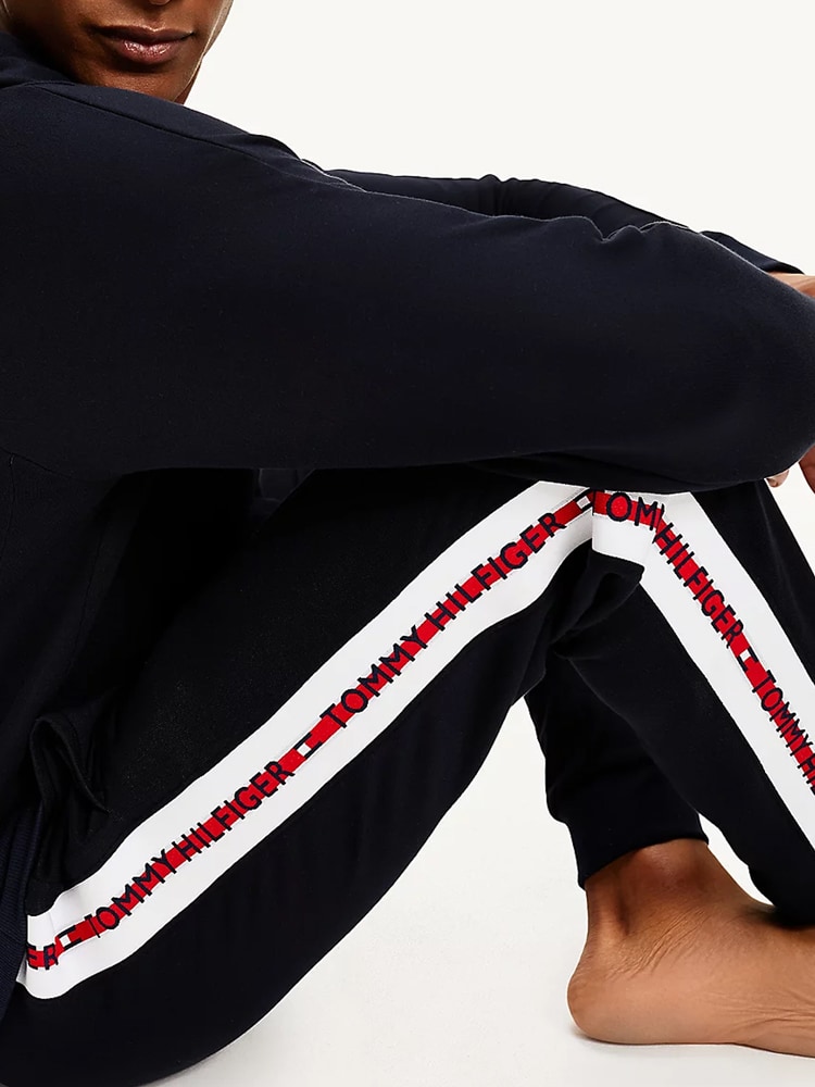 Met deze Jogger van Tommy Hilfiger maak jij een statement. Uitgevoerd in donkere marine blauw met stoere TH logo tape aan de zijkant. De broek is gemaakt van een katoenmodal mix waardoor deze heerlijk zacht en comfortabel aanvoelt en mooi om de benen valt. Ga voor een complete look door de broek te combineren met een bijbehorende top.